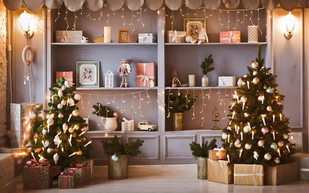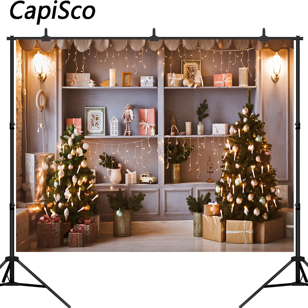 Каписко фоны для фотосъемки Рождественская елка камин Подарки Игруш...