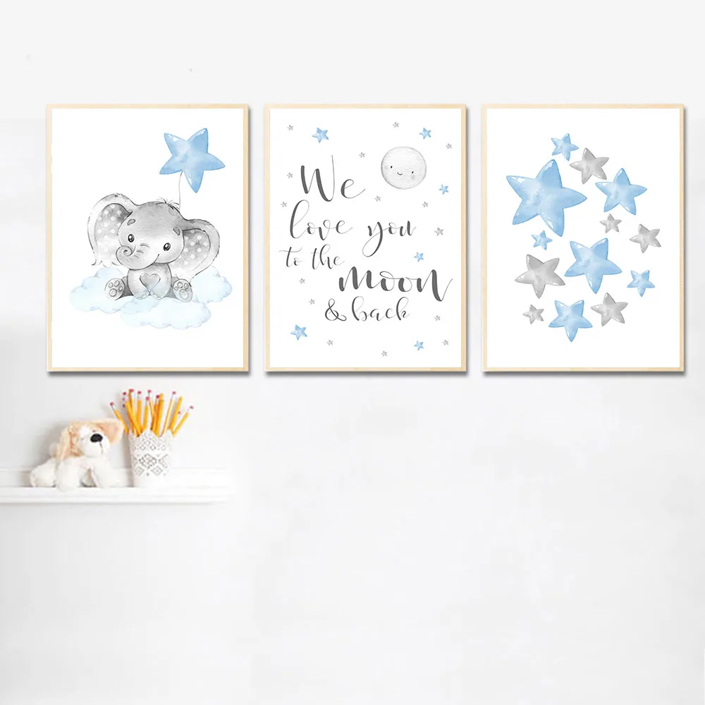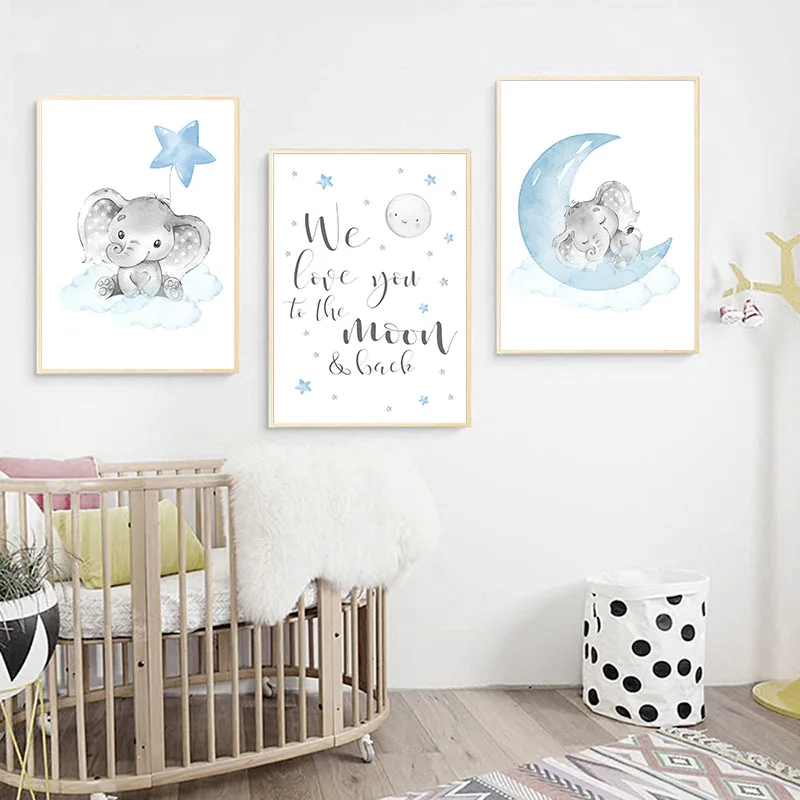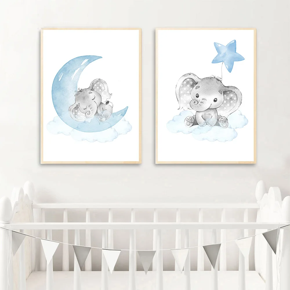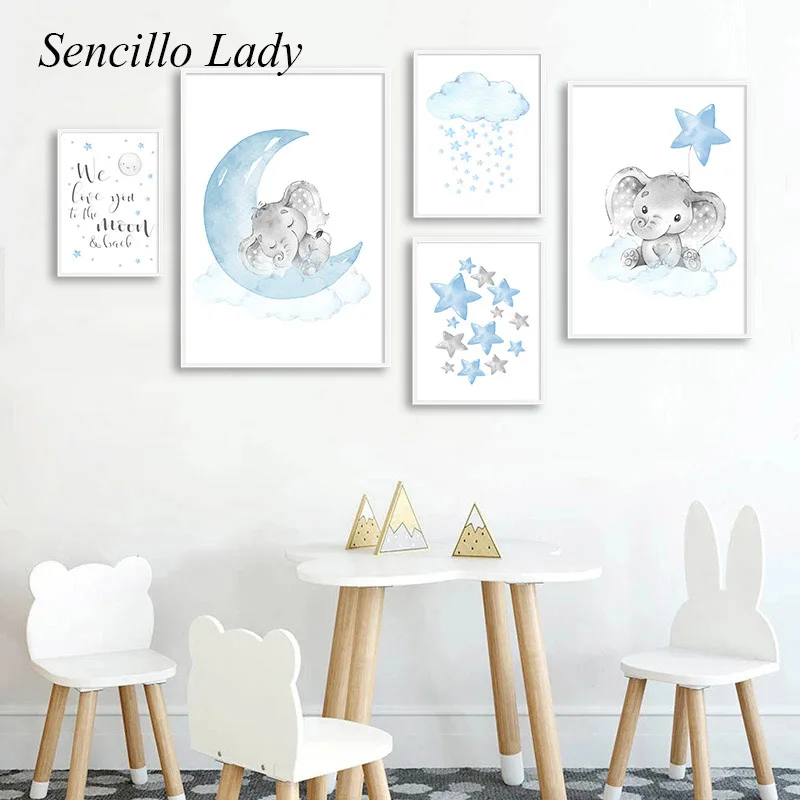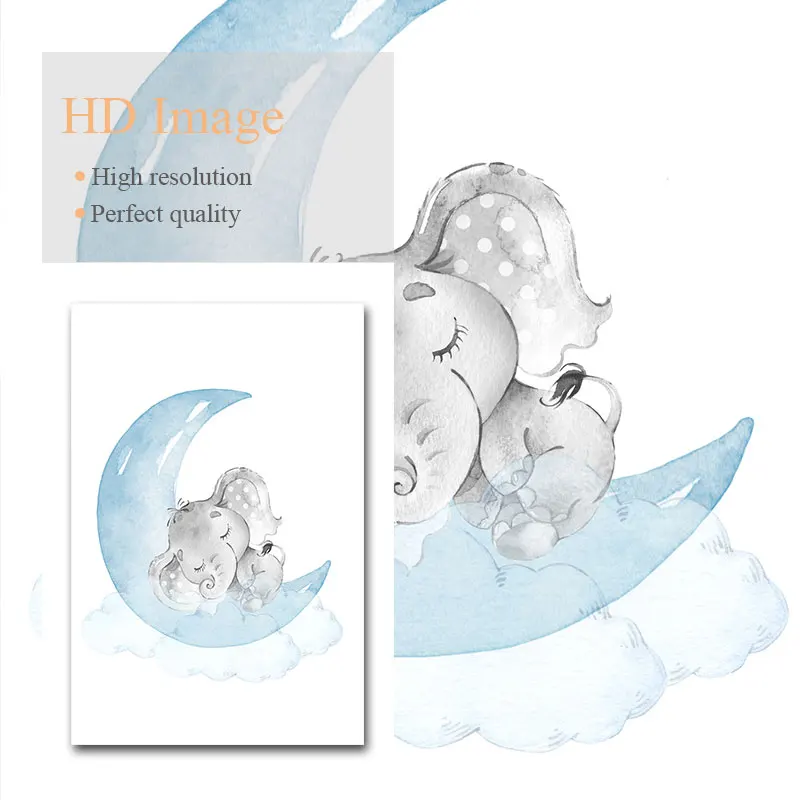 Картина на холсте с изображением голубого слона, Луны, Детские стихи г., для украшения детской спальни