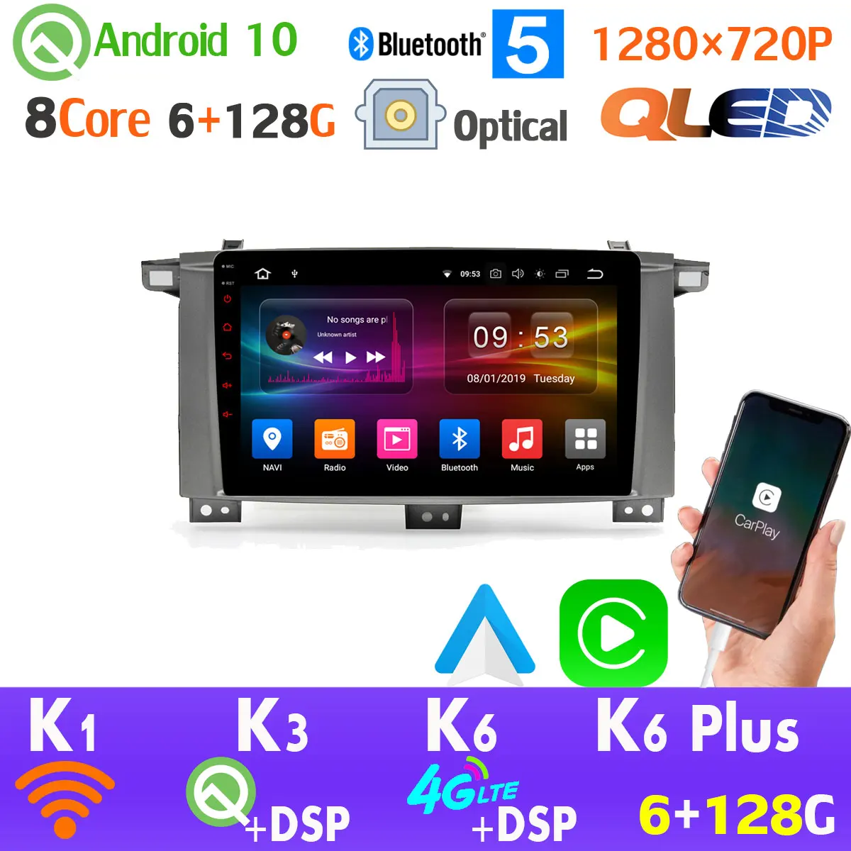 Автомобильный мультимедийный плеер QLED, 6 + 128G, 1280x720P, Android 10,0, для Toyota Land Cruiser 100, 105, GPS-навигация, HDMI, радио, CarPlay, SPDIF