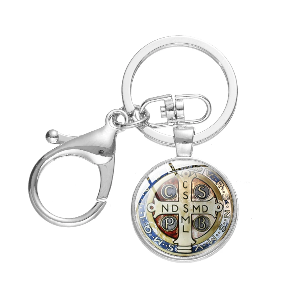 SONGDA Санкт-медаль Бенедикта брелок ремесленных Сан-Бенито крест медаль с живописным узором Стекло кабошон браслеты с подвесками с брелком-держателем для ключей Святой подарок
