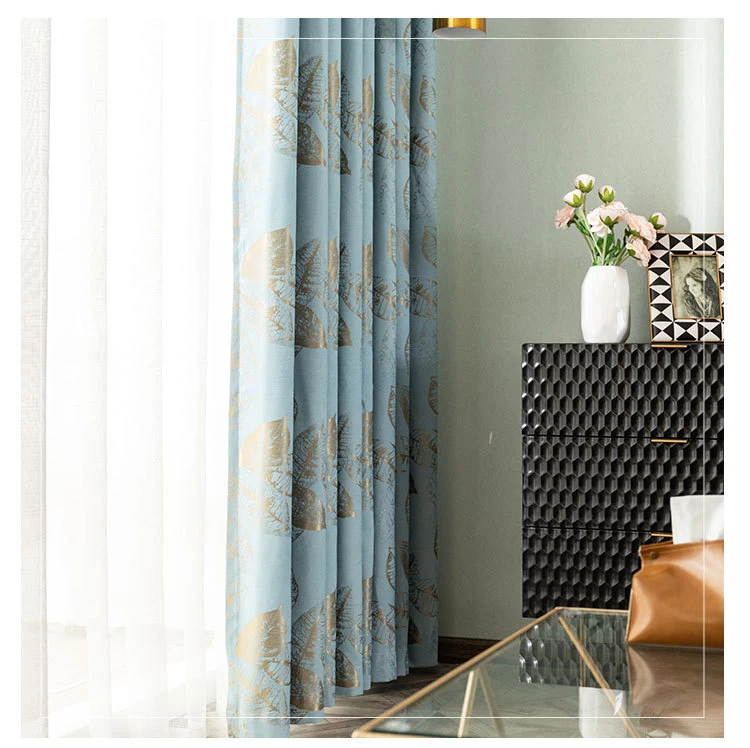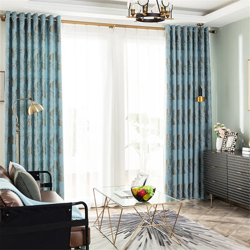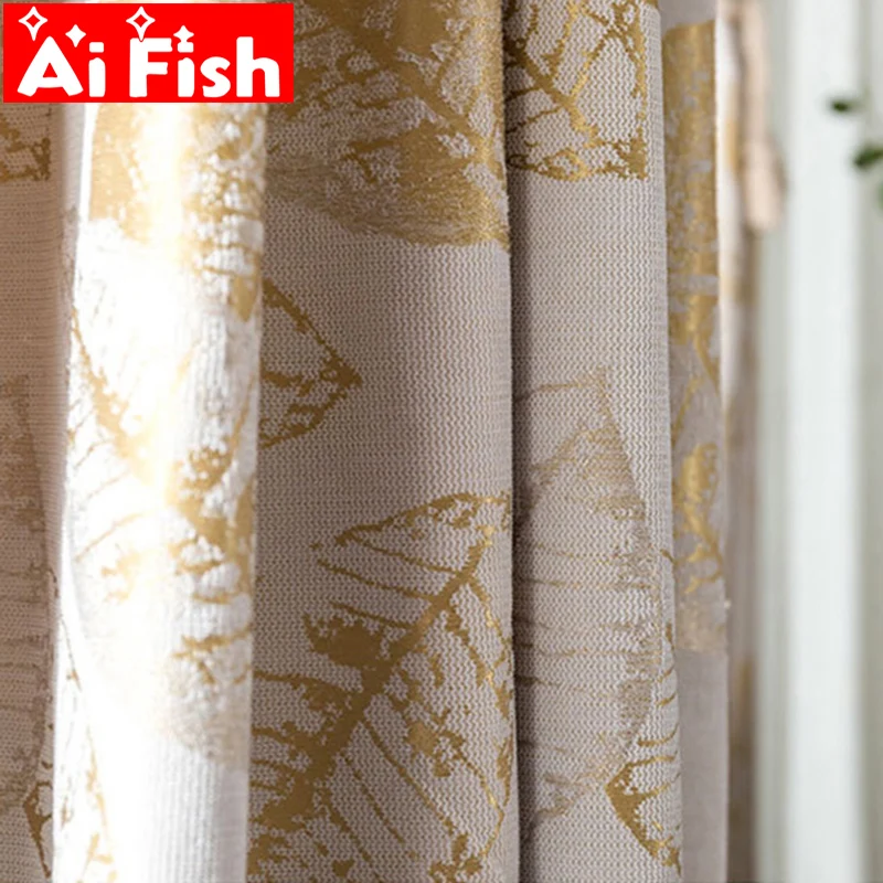 Затемняющие шторы ZH208 #3, бежевые занавески на окна с сияющими золотыми листьями, для гостиной, с синим принтом, занавески для спальни