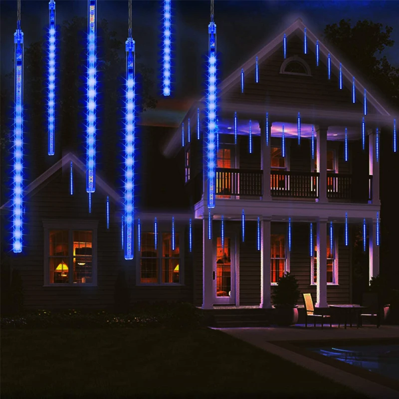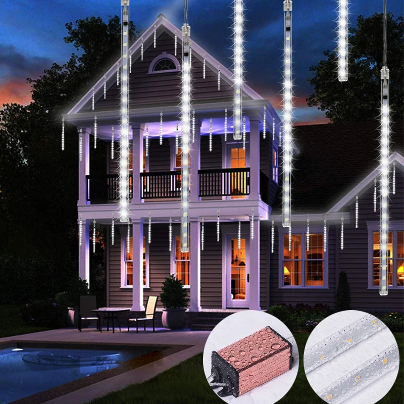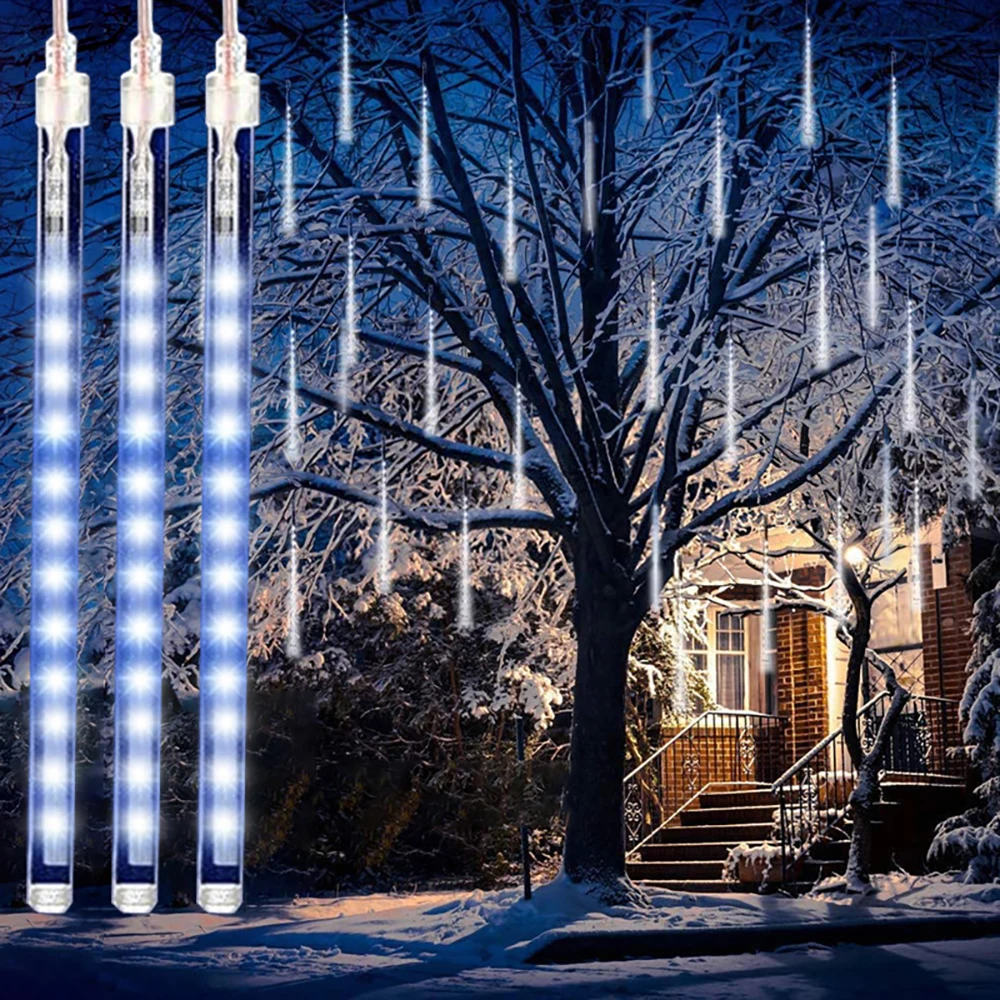 Светодиодные Рождественские огни, 8 трубок, метеоритный душ, водонепроницаемая гирлянда, сказочные огни для наружного украшения, праздничное освещение, фонарь