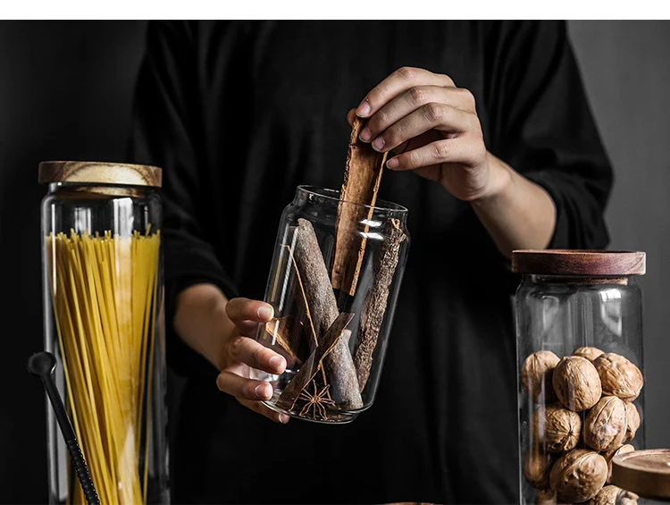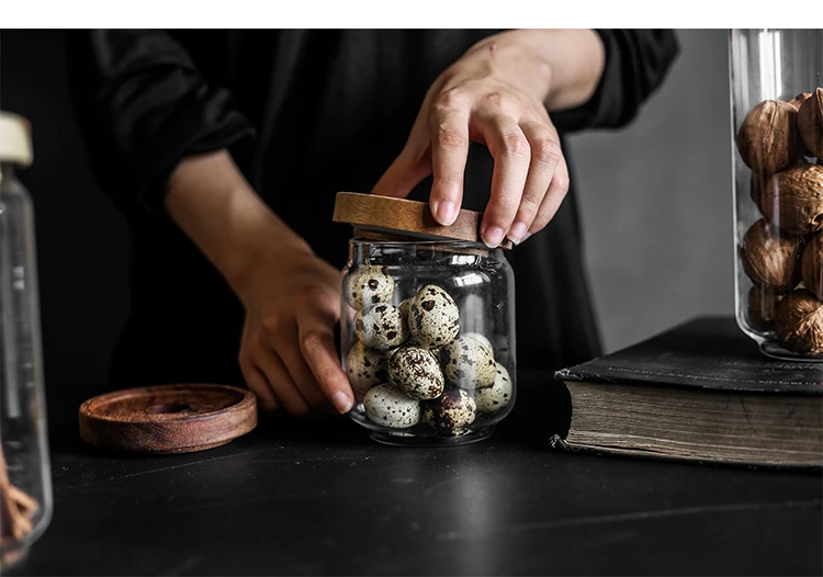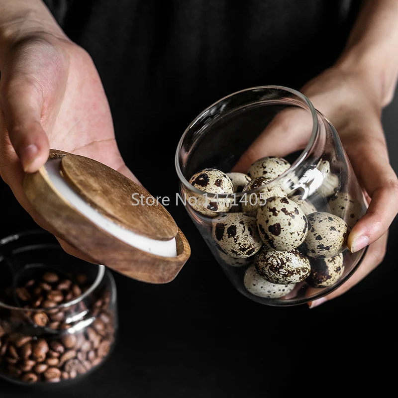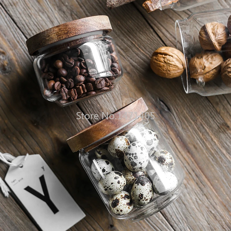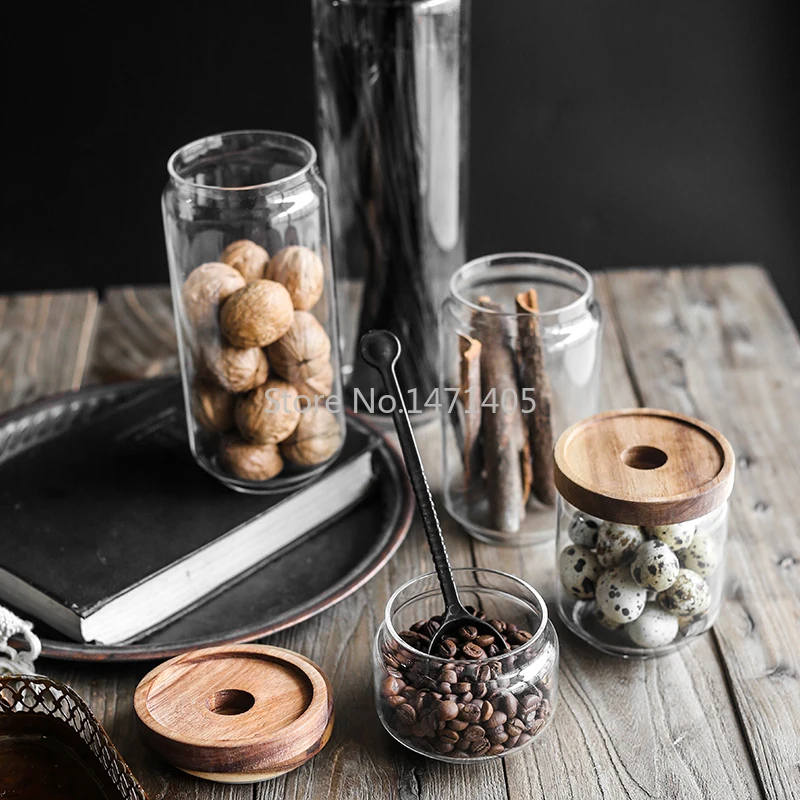 Ретро Стекло Кофе Чай воздухонепроницаемая банка акации деревянная крышка хранения многозернистая паста банка для хранения