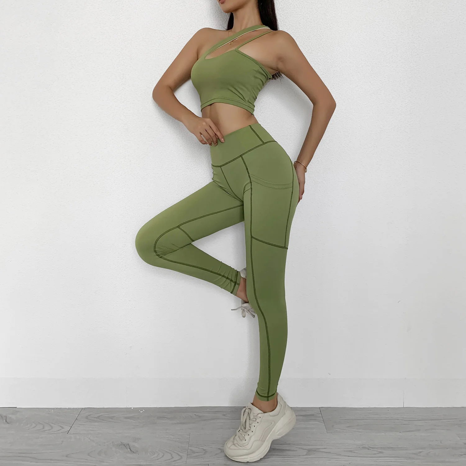 Женский сексуальный спортивный бюстгальтер на одно плечо, леггинсы ...