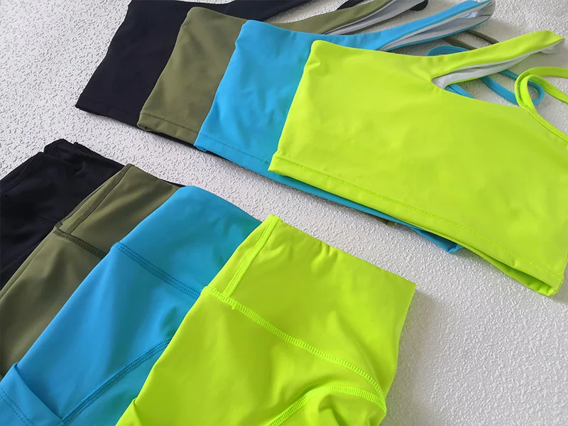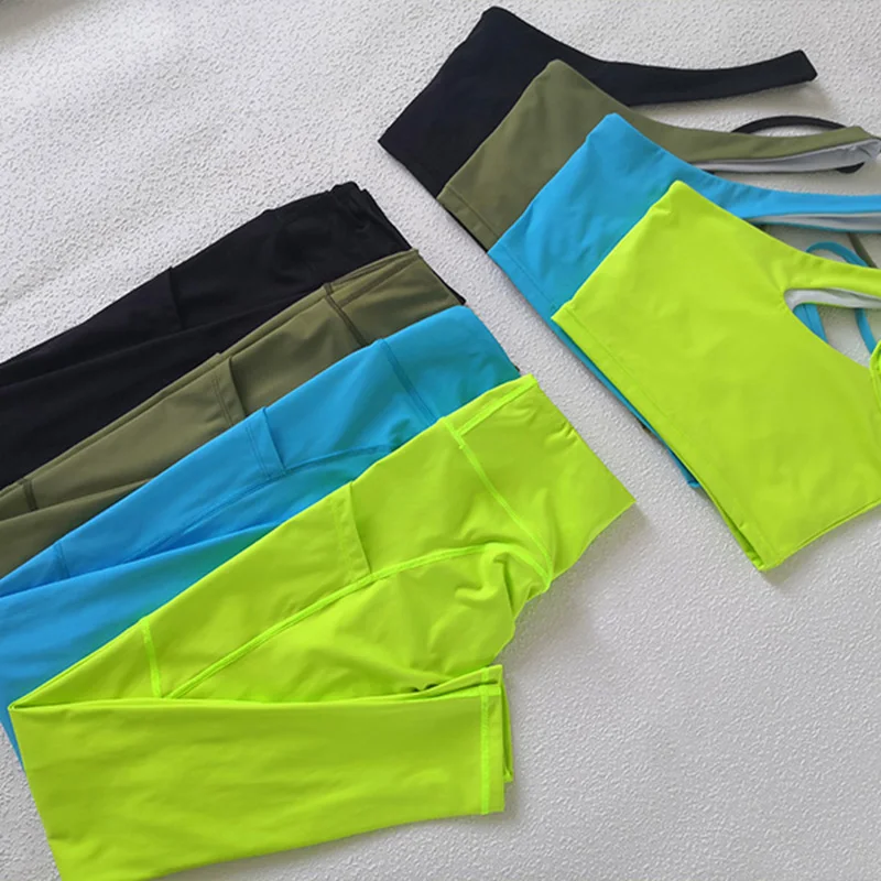 Тренажерный зал комплект для женщин из 2 предметов спортивный бюстгальтер Топ Йога Брюки Леггинсы с карманами спортивная Женский спортивный костюм Йога набор тренировки одежда S-L