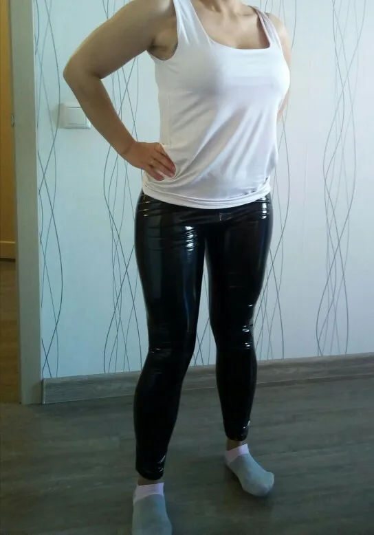 Женские леггинсы из искусственной кожи черные симфонические леггинс...