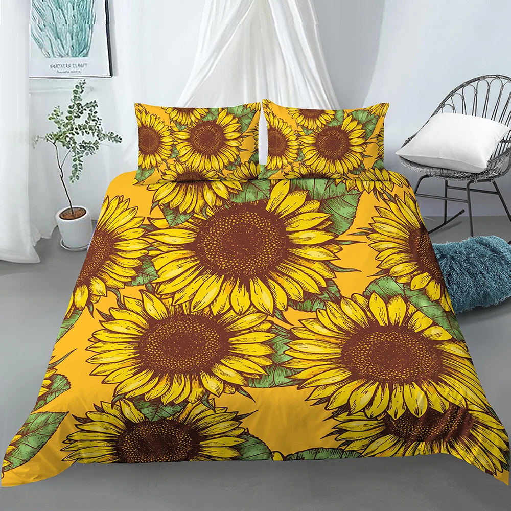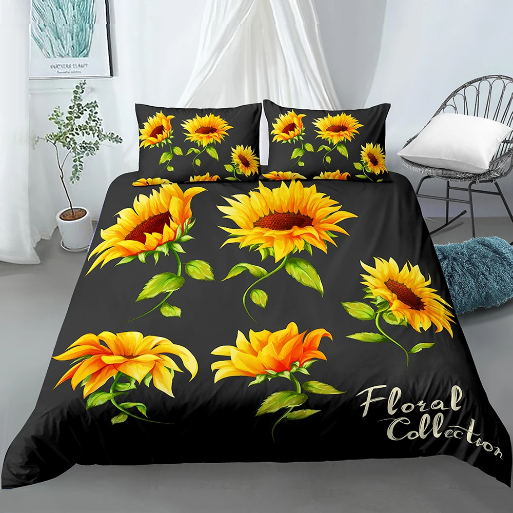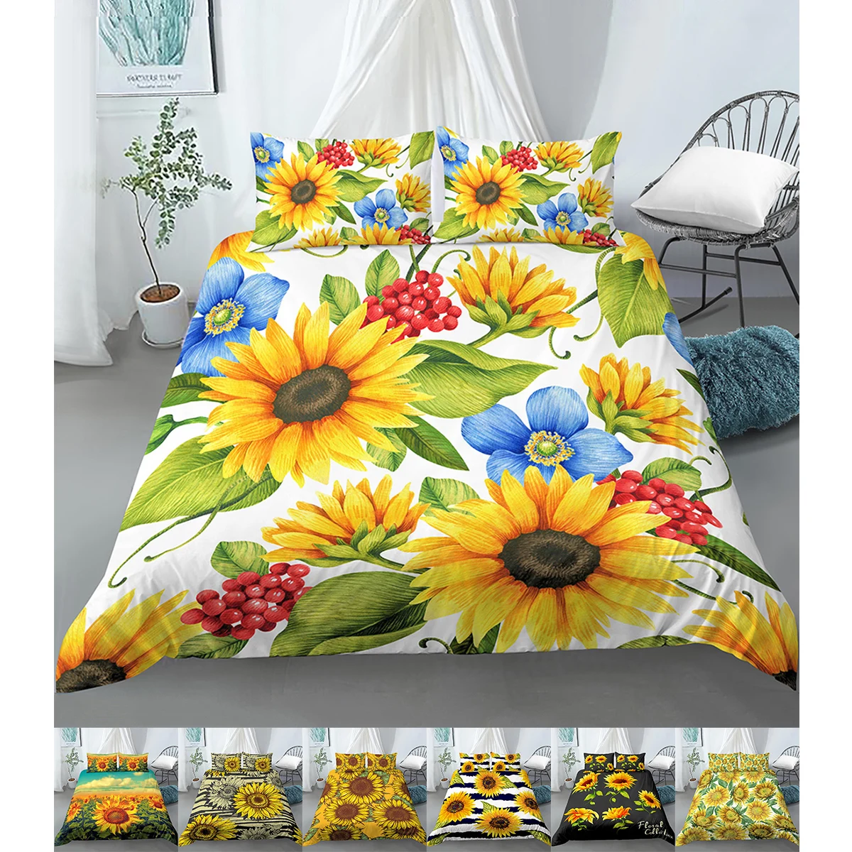 Комплект постельного белья с 3D принтом подсолнуха, пододеяльник с ...