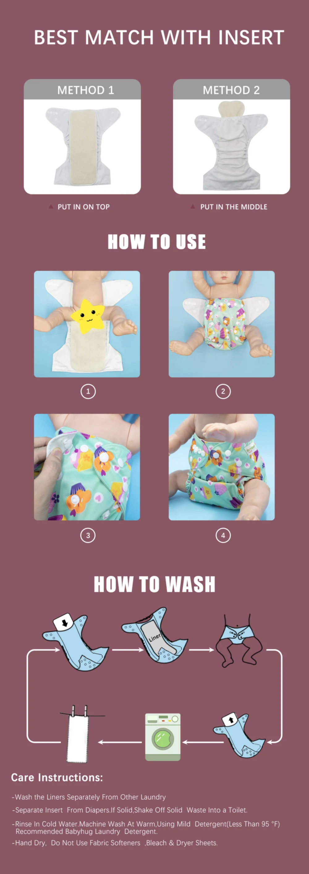 2. Размер: 36 см x 13,5 см (подходит для всех регулируемых тканевые карманные подгузники)