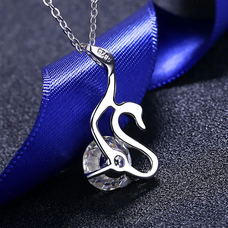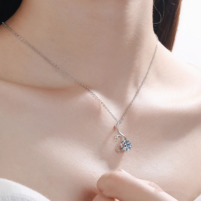 Цепочка с подвеской в форме лебедя из муассанита, серебро 925 пробы