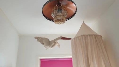 Он прибыл довольно быстро, когда он упакован, вы должны оставить его расширенным. Я выбрал цвет "коричневый", и он скорее бежевый, но очень красивый, единственным недостатком является то, что нити, чтобы повесить их, очень тонкие, и я не знаю, хорошо ли они держатся.