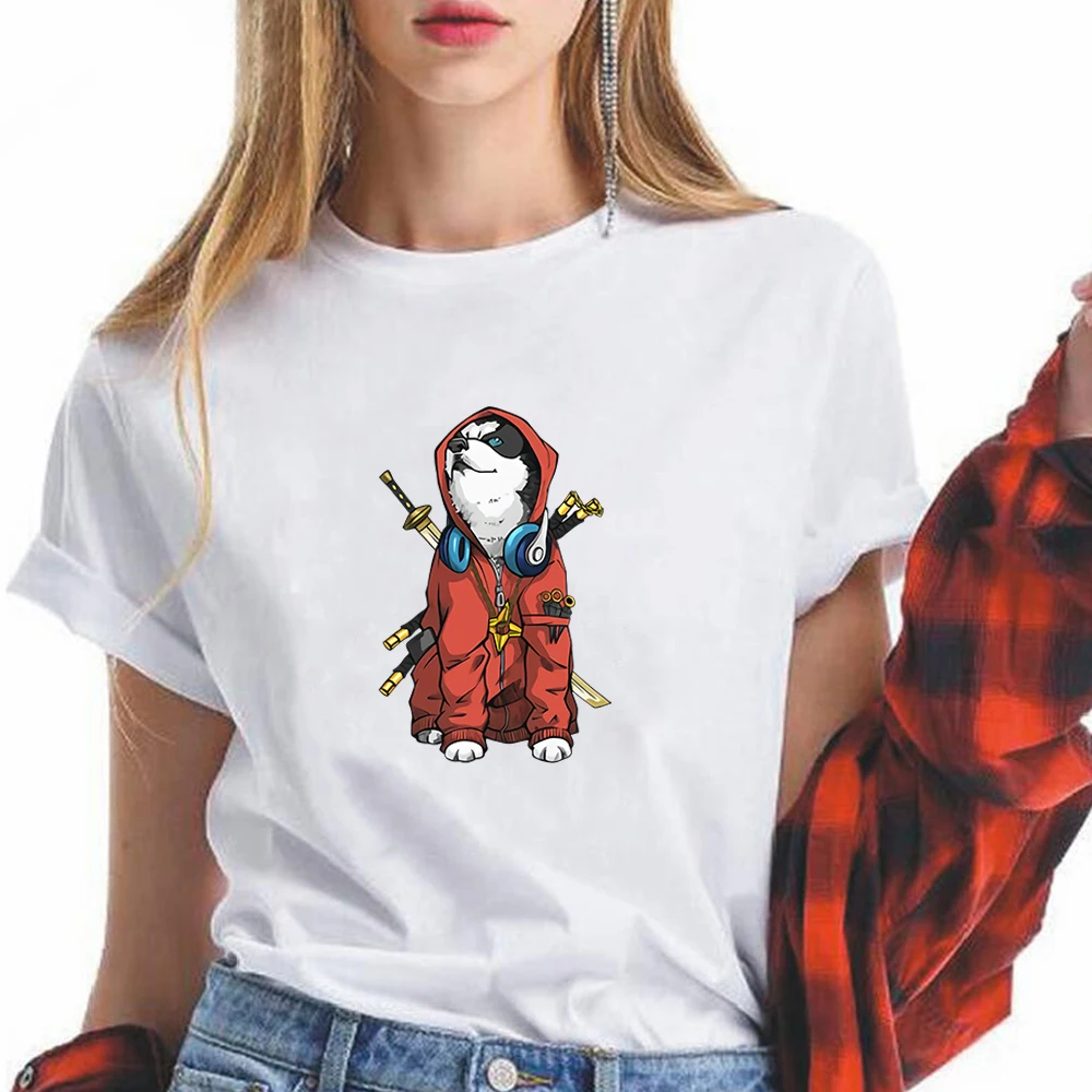 Городская хаски дешевая женская одежда и бесплатная доставка футболки с короткими рукавами современные Kawaii Funny Harajuku Street Girl Топы Футболка