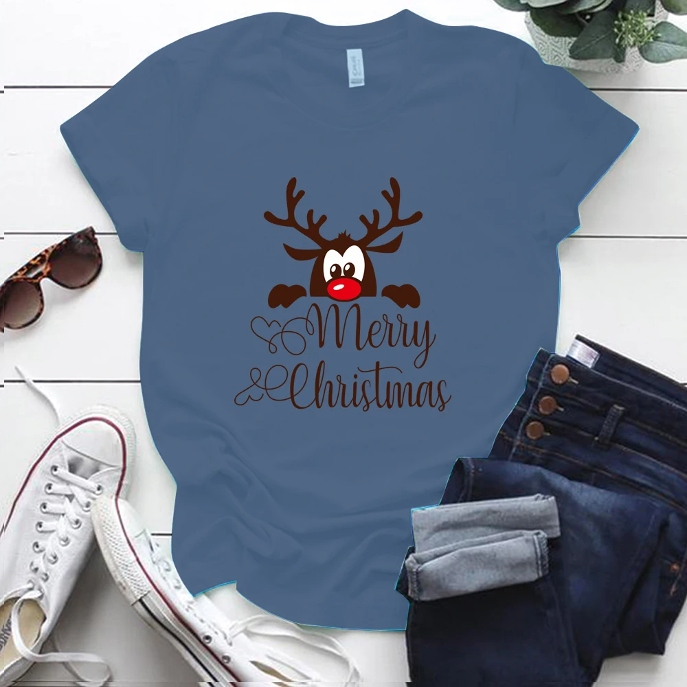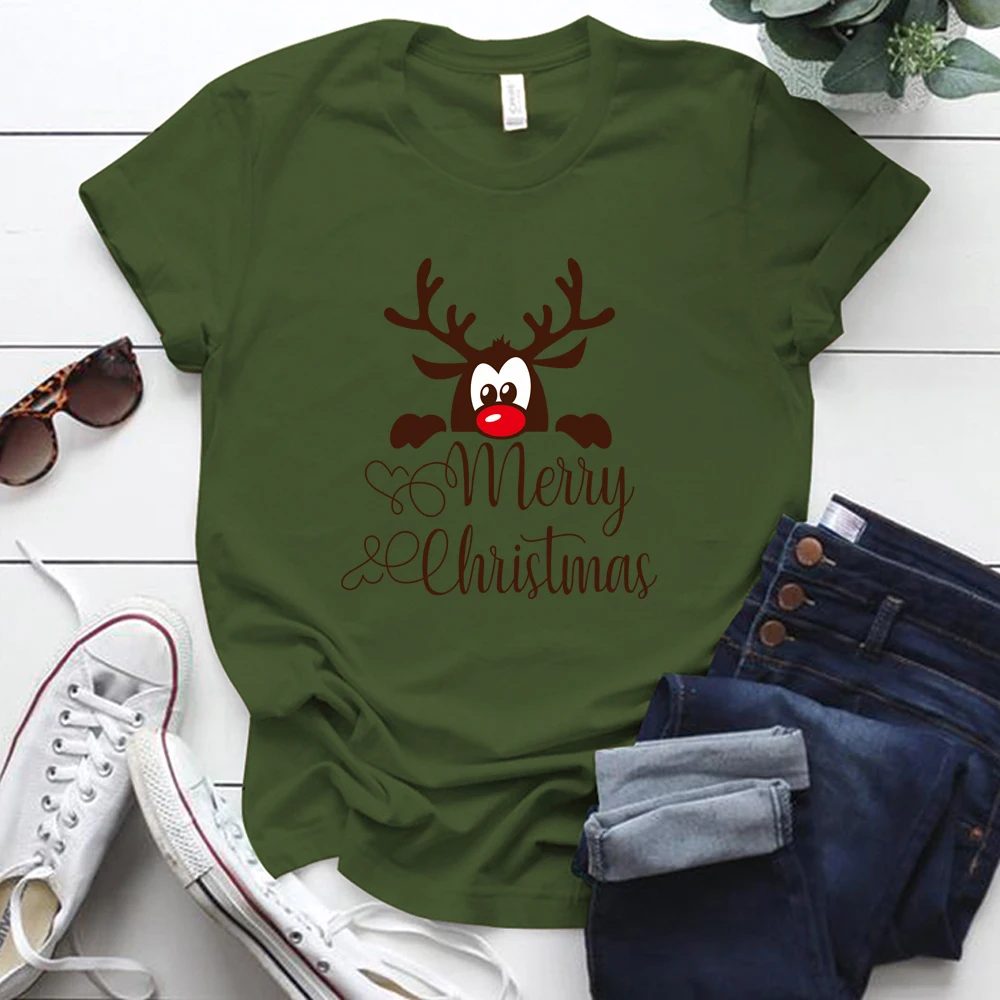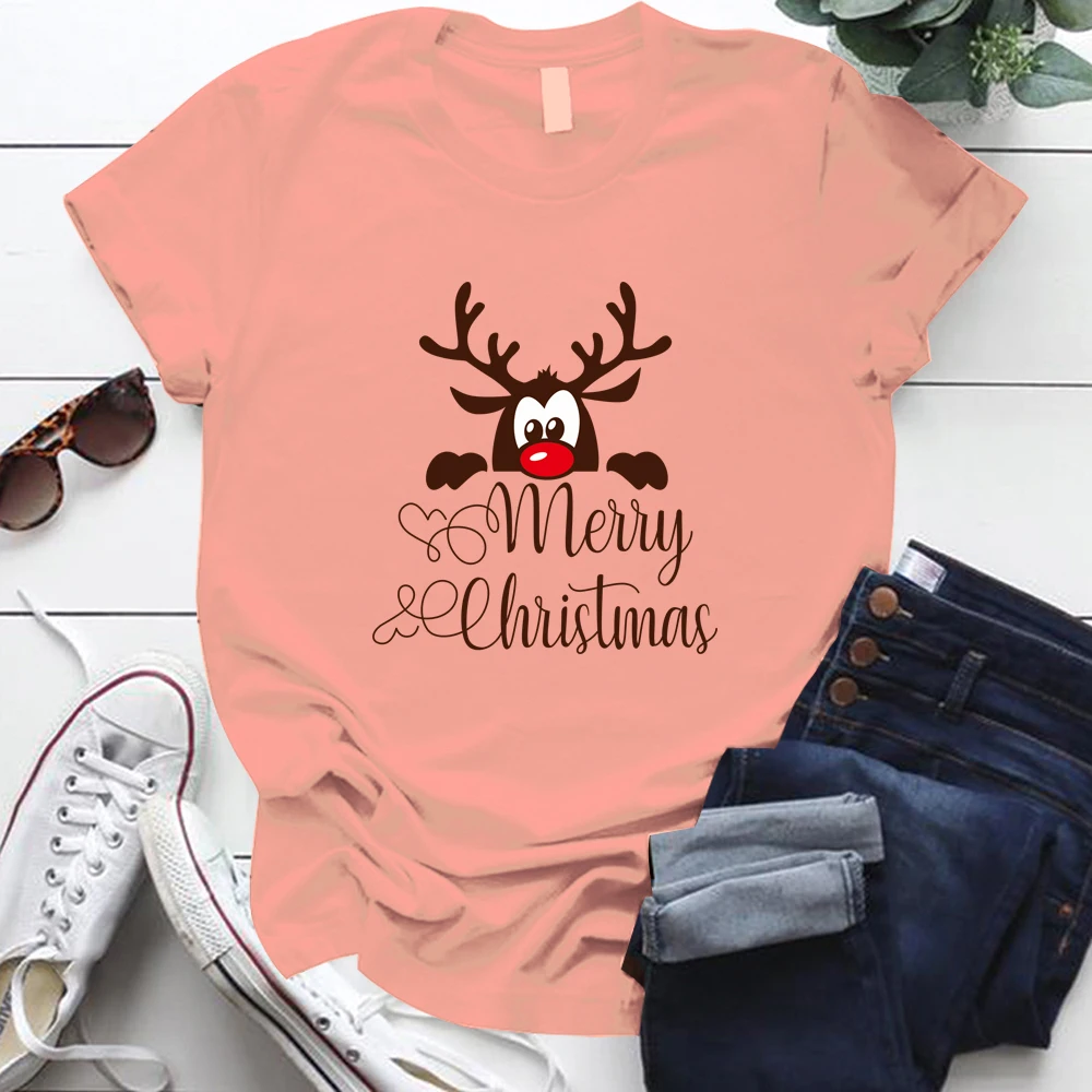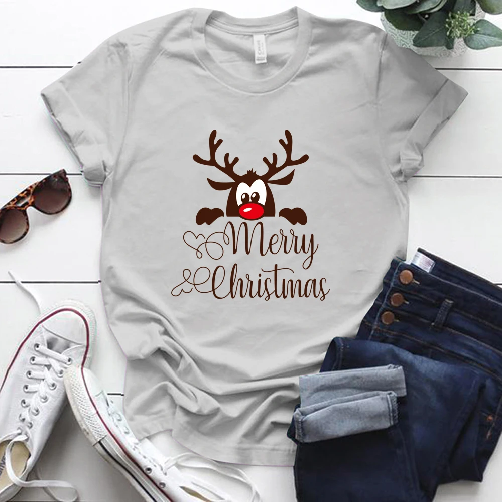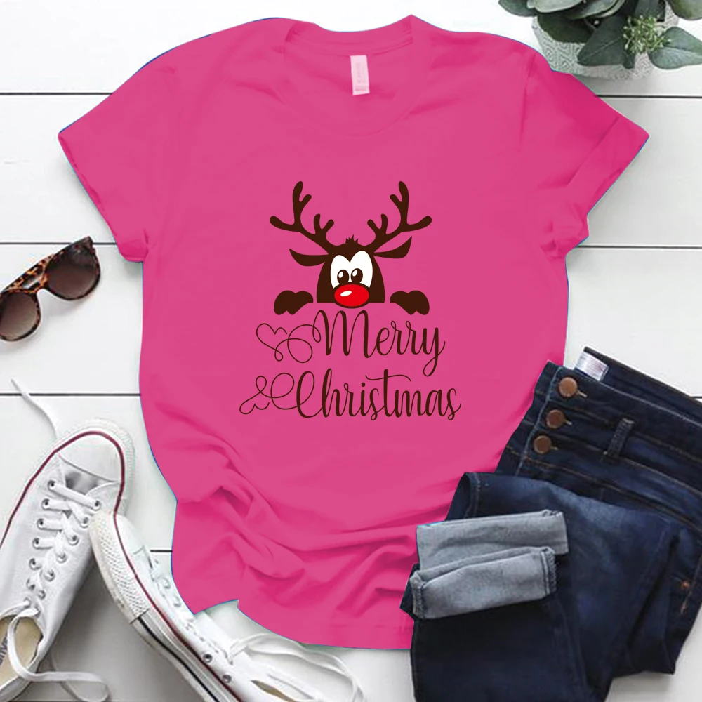 Merry принт с рождественским лосем женские футболки с коротким рукавом, S-5xl хлопок, футболка оверсайз, праздничный подарок для дам, топы, футболки женские