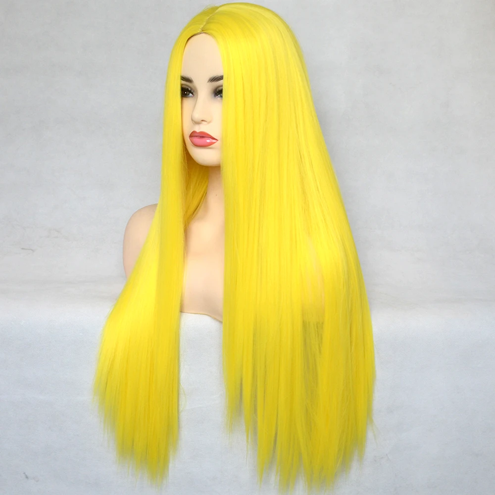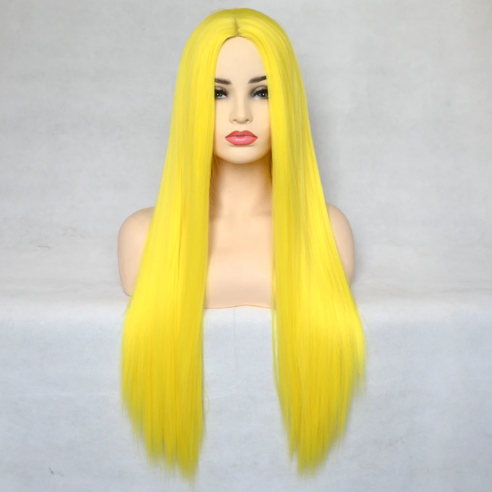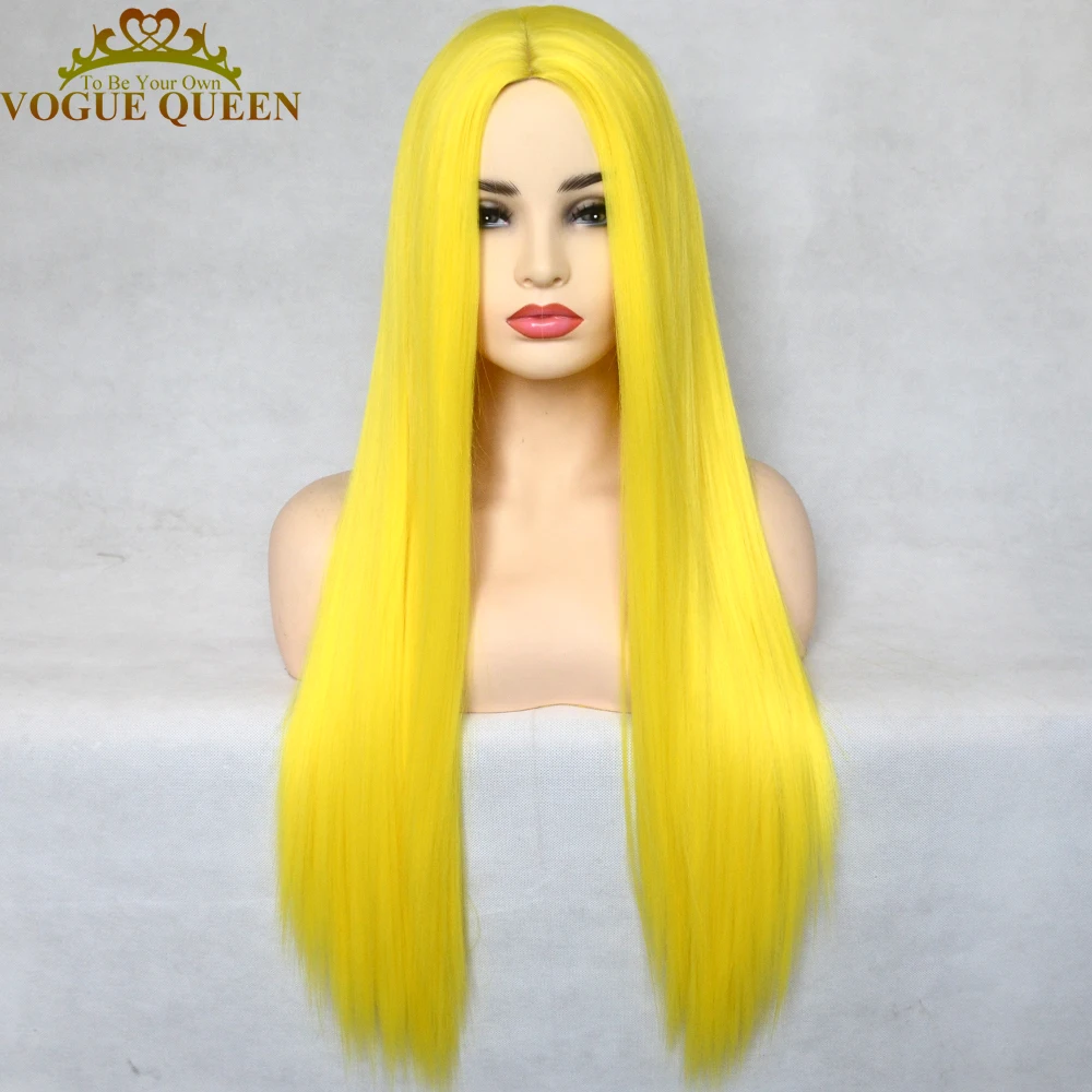 Vogue Queen сексуальный желтый синтетический длинный прямой парик полностью парики машинной работы натуральные средняя часть Термостойкое волокно для женщин