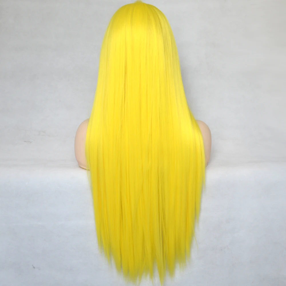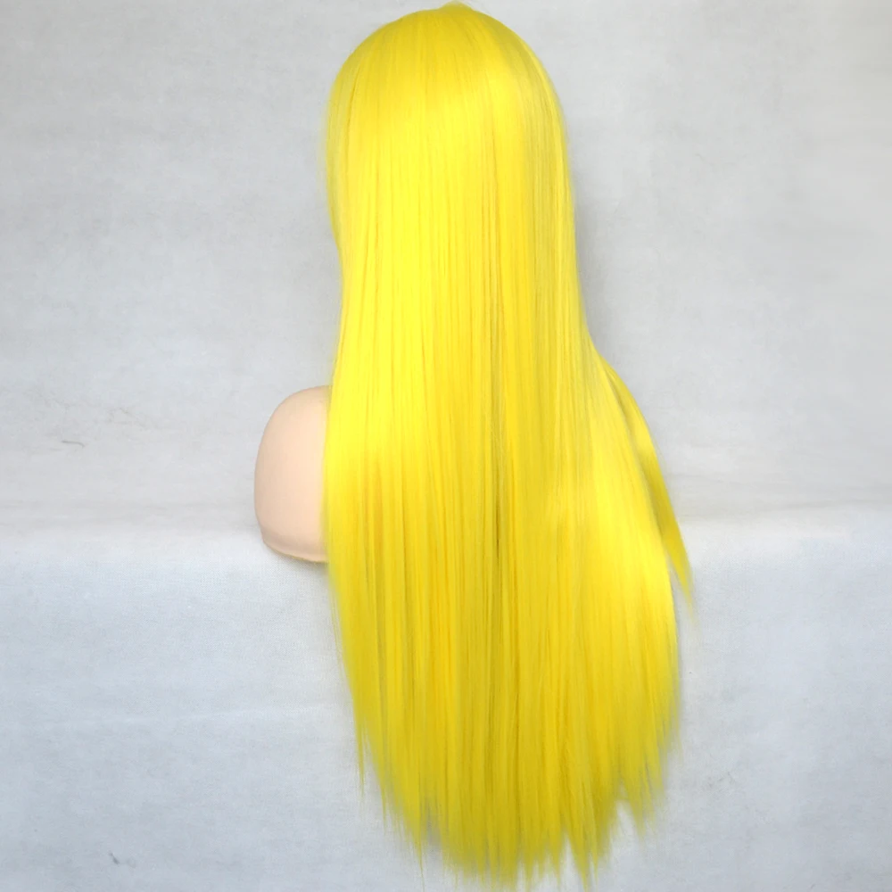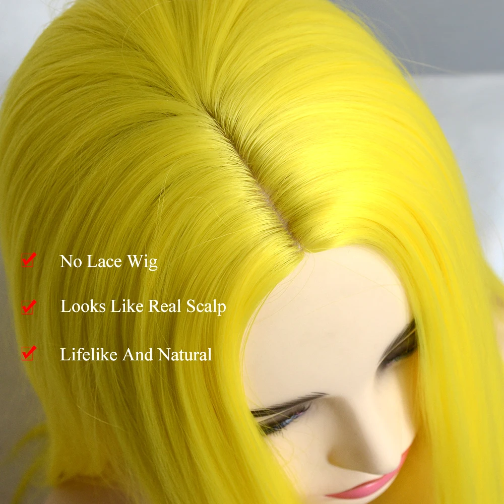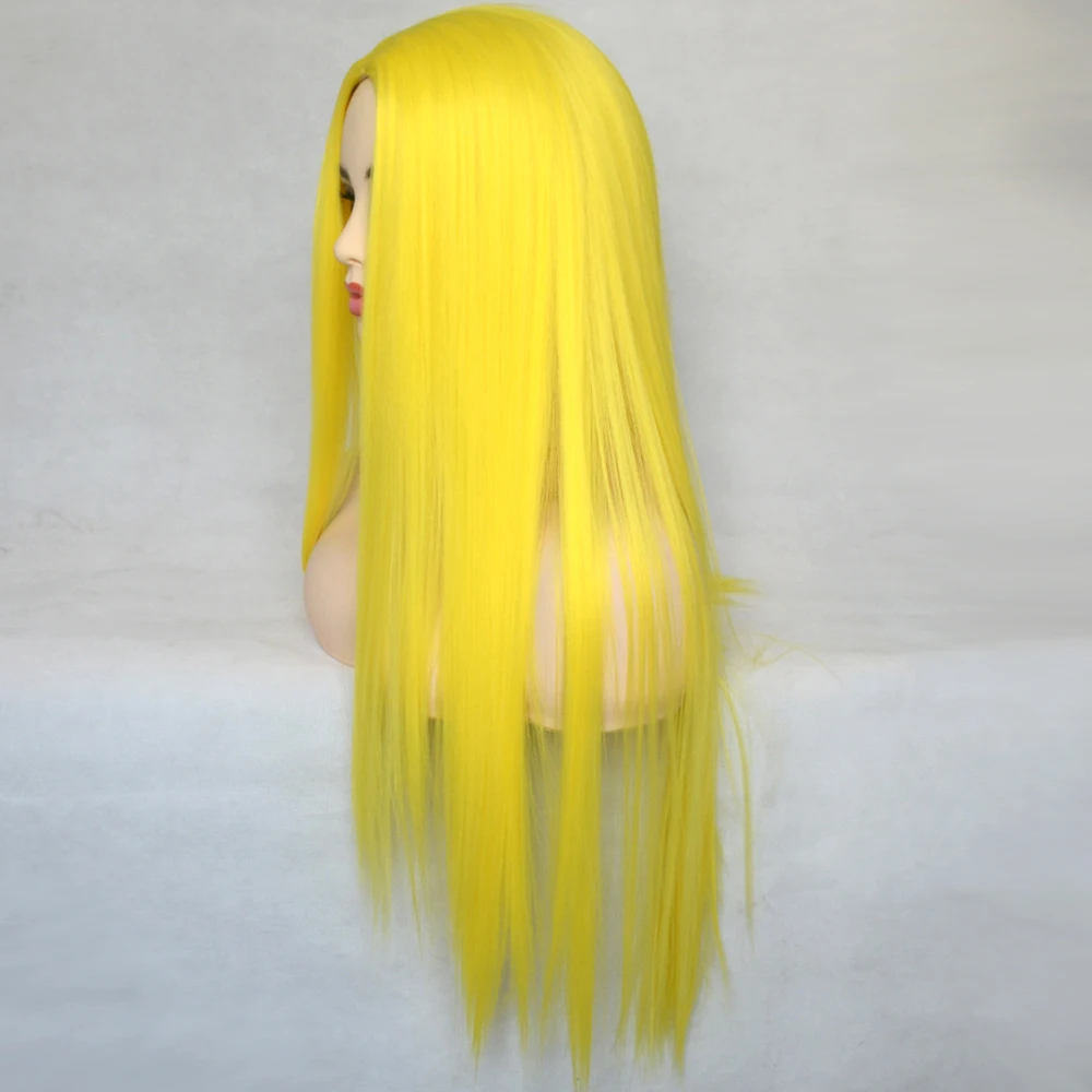 Vogue Queen сексуальный желтый синтетический длинный прямой парик полностью парики машинной работы натуральные средняя часть Термостойкое волокно для женщин