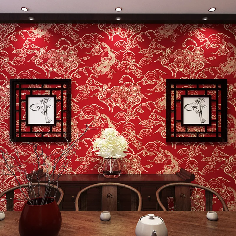 Китайские Красные обои с рисунком дракона, классические обои в китайском стиле Дзен для чайного дома, ресторана, маленькие декоративные обои для ресторана