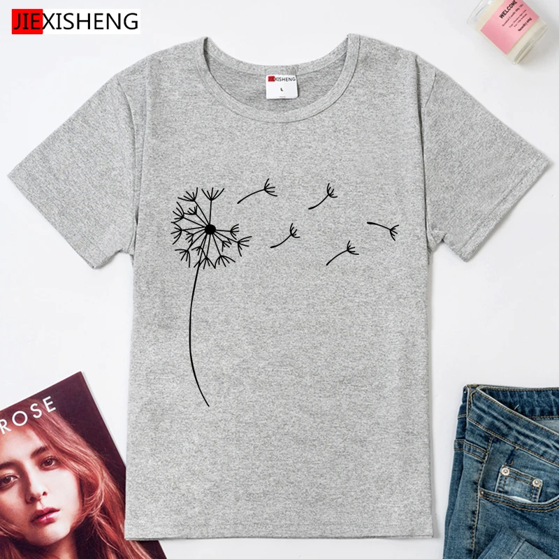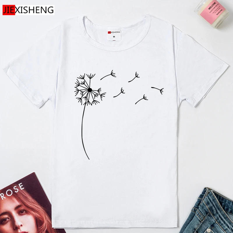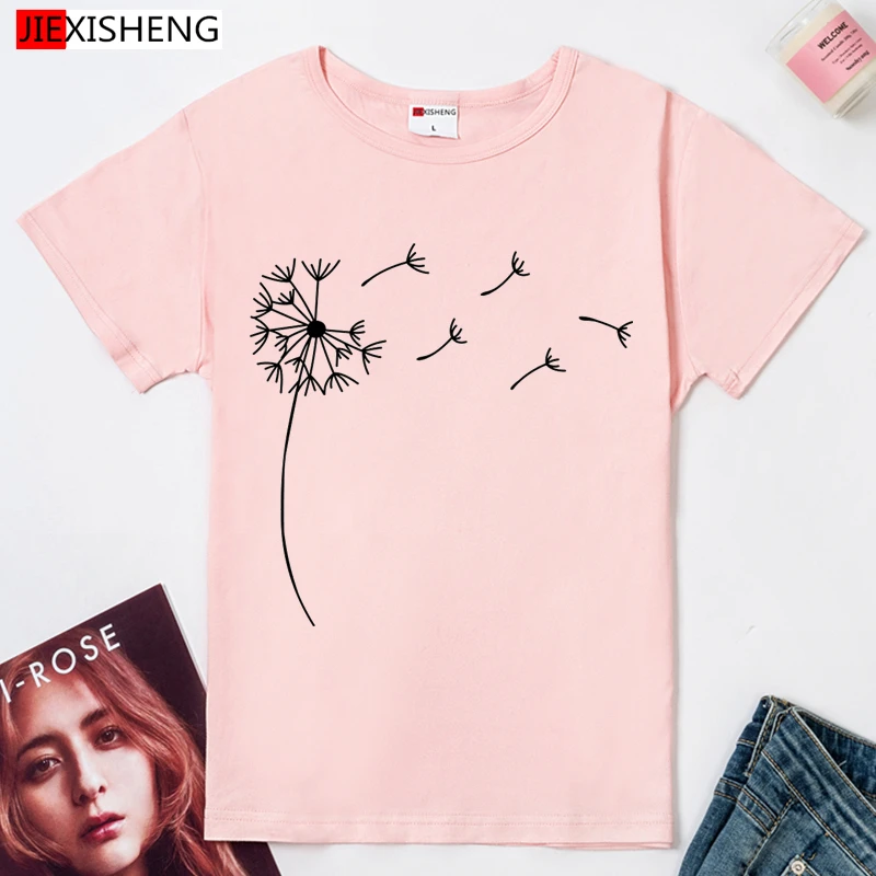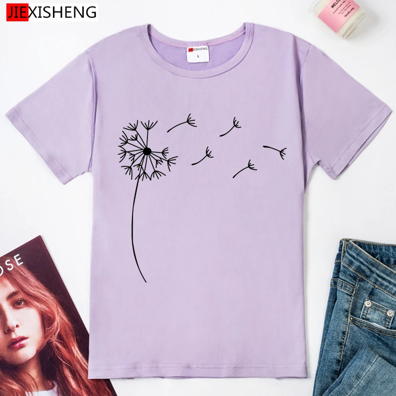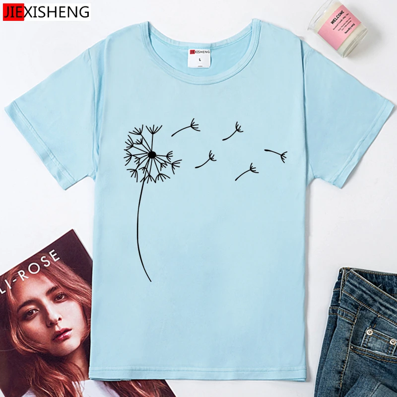 Одуванчик принт Женская футболка s повседневное забавная футболка с коротким рукавом и О-образным вырезом Футболка модная летняя одежда размера плюс 6 видов цветов негабаритных футболка