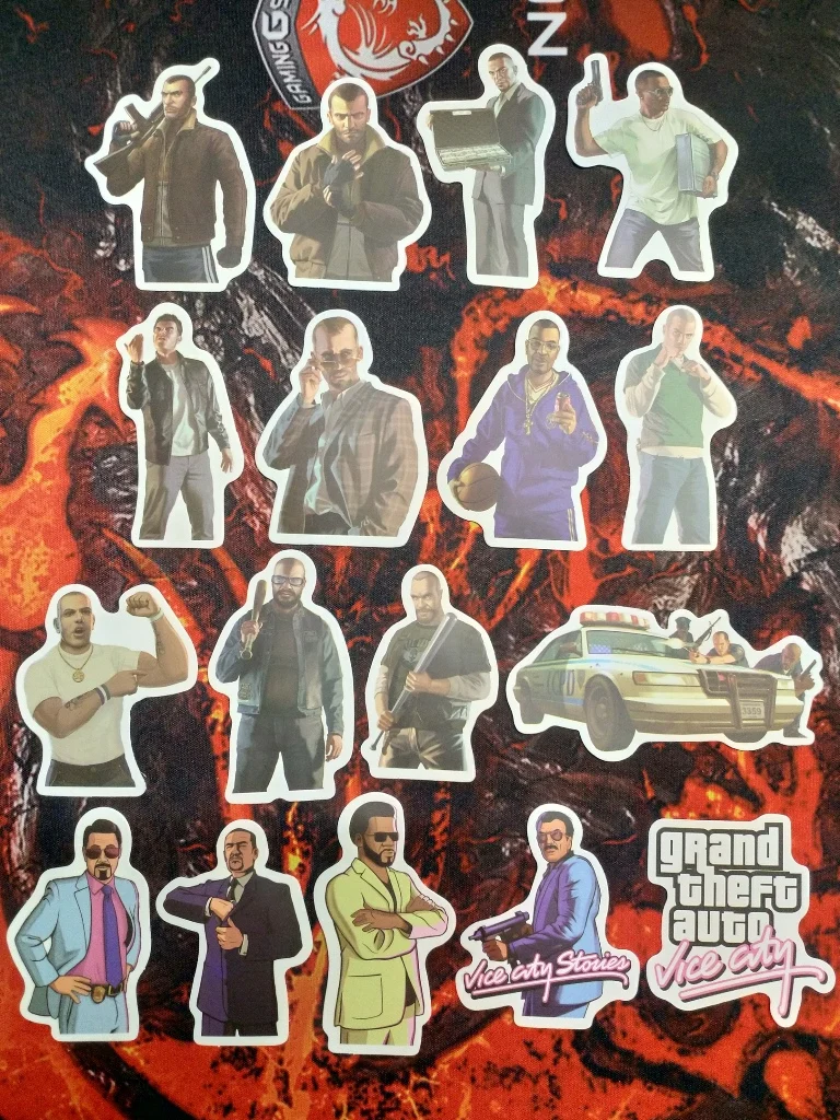 Autocollants qui s'accrochent bien aux surfaces et bien découpés Dommage qu'il n'y ai pas plus de San Andreas et Vice City