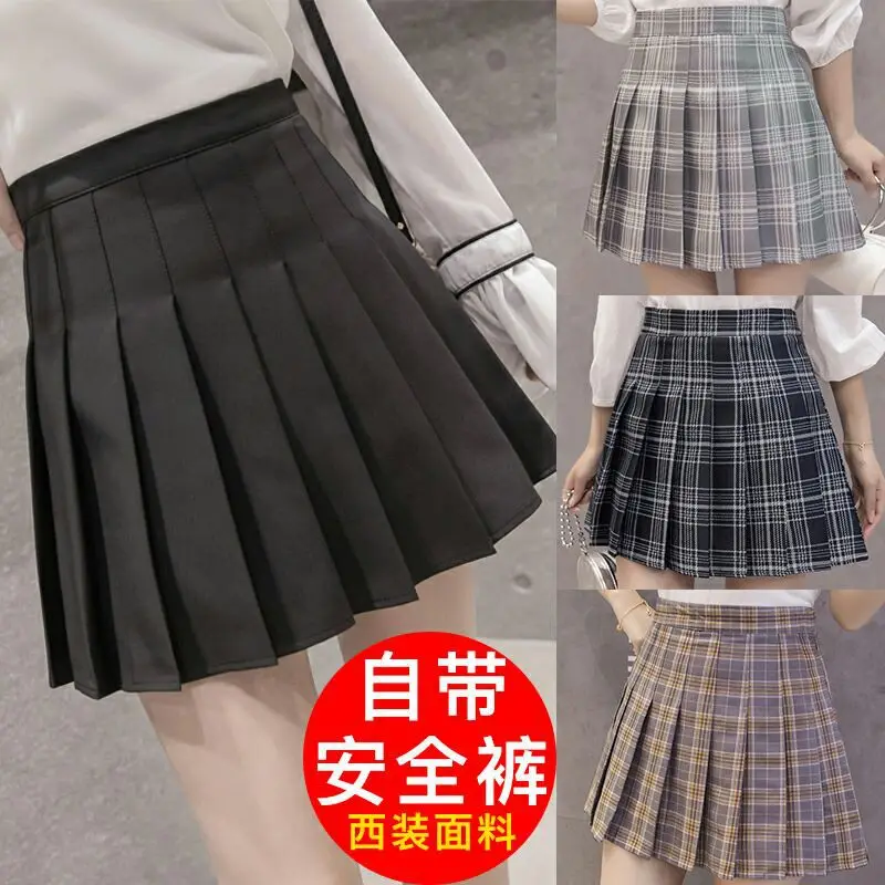 Плиссированные юбки для студентов, новинка осень-зима 2021, белая и черная короткая юбка в стиле преппи, трапециевидная мини-юбка с завышенной талией, милая Женская юбка