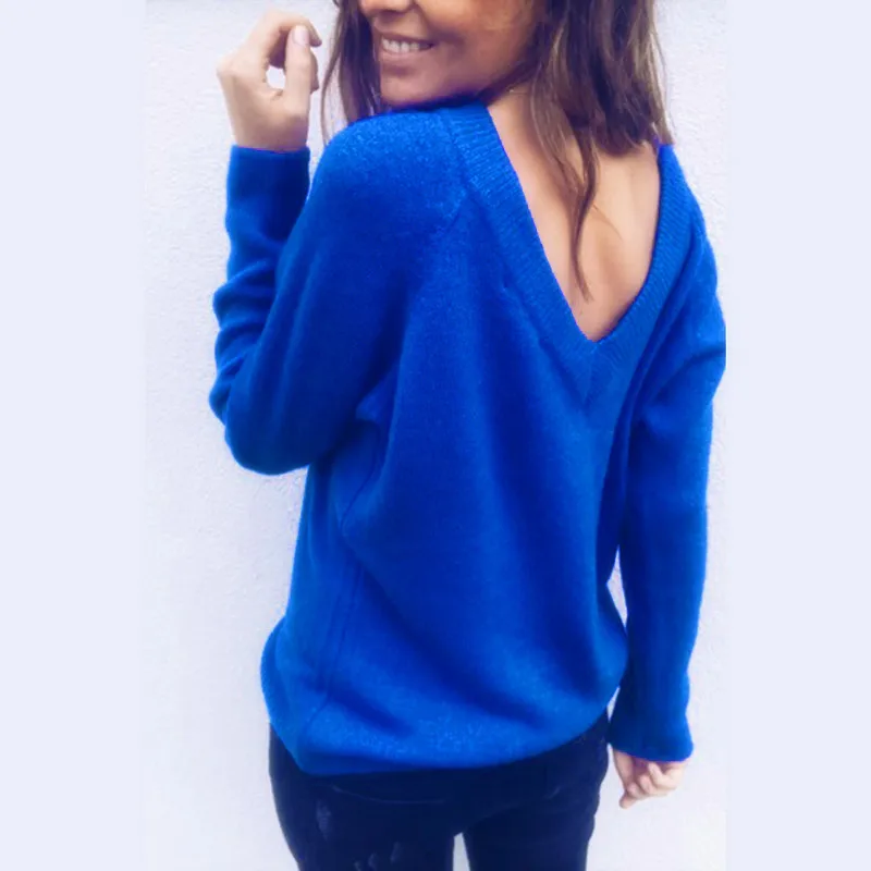 Женский свитер с V-образным вырезом, однотонный Элегантный мягкий пуловер, универсальный модный свитер на осень и зиму