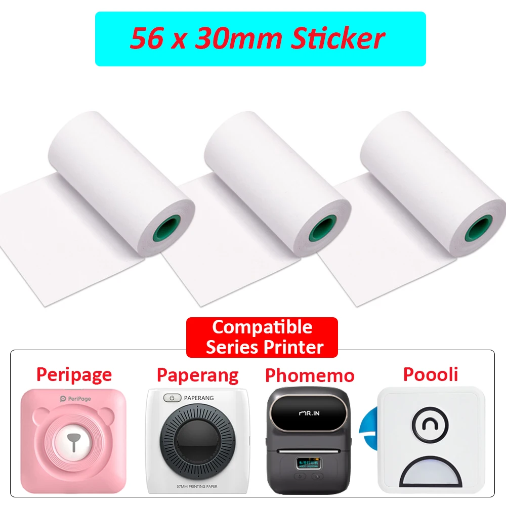 3-30 рулонов 56x30 мм белый печать наклеек Paperfor PeriPage A6 A8, Paperang, Phomemo D30 M02 M110, Poooli Карманный принтер