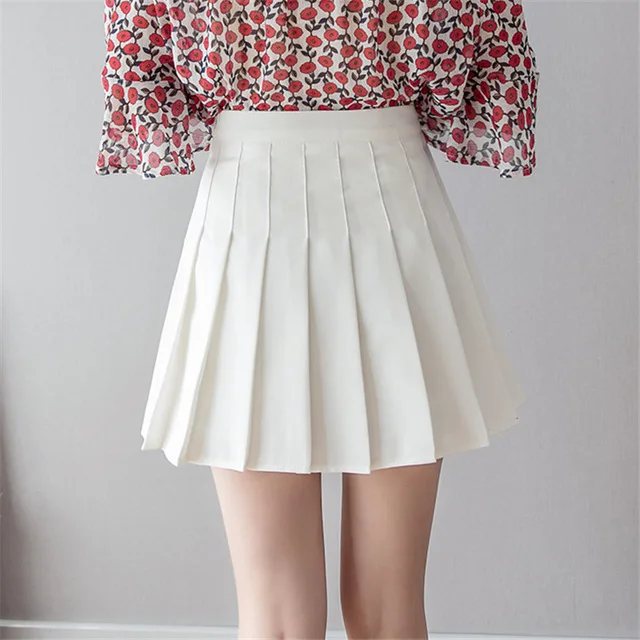 Мини-юбка HOUZHOU с высокой талией, белые студенческие плиссированн...