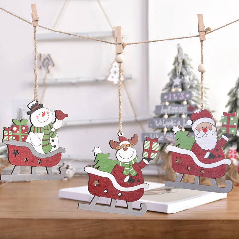 Рождественские деревянные украшения, подвеска, деревянный окрашенны...