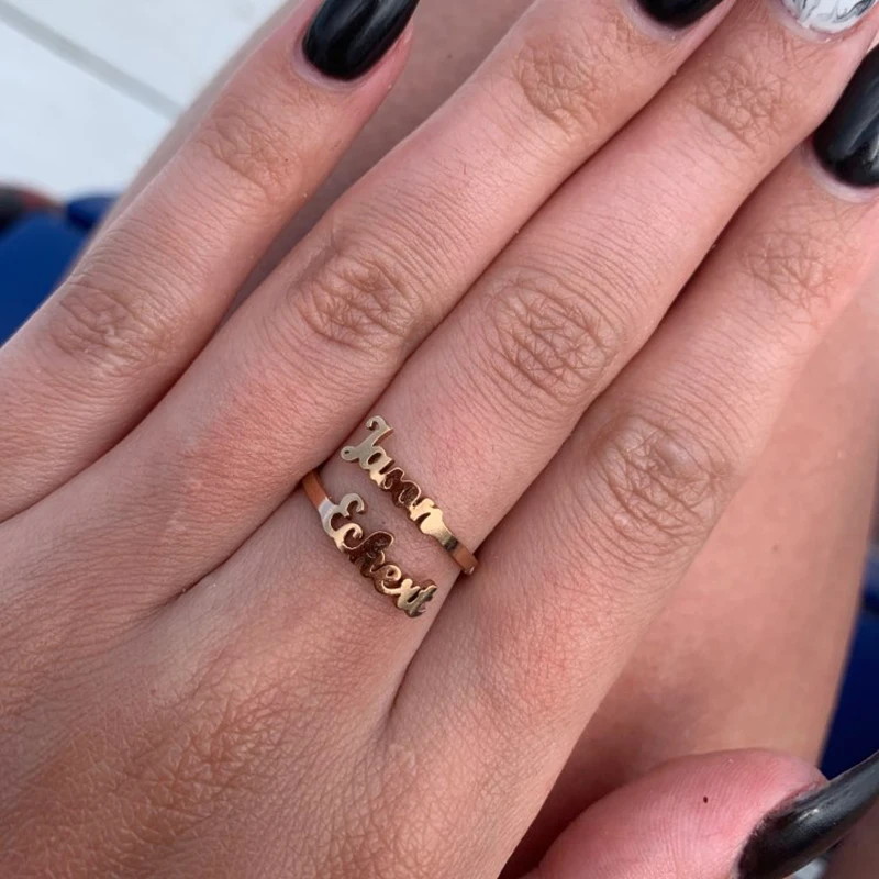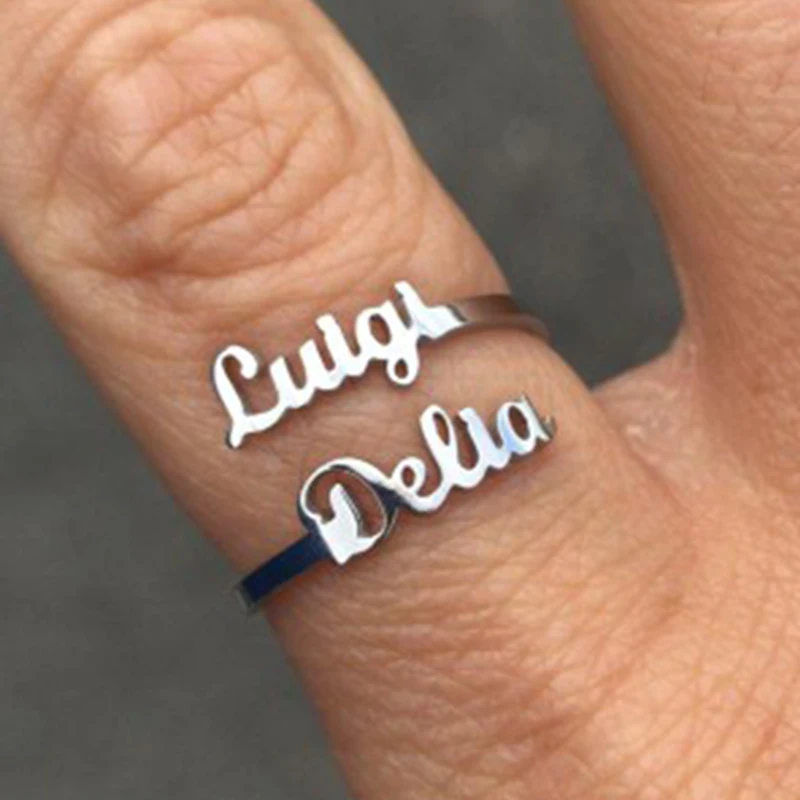 Индивидуальные двойные именные кольца для женщин, золотые кольца из нержавеющей стали с сердцем, индивидуальные парные кольца для влюбленных детей
