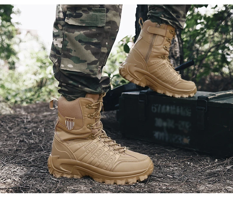 Военные тактические мужские ботинки, Водонепроницаемые кожаные ботинки для пустыни, армейские ботильоны, рабочая мужская обувь, пара мотоциклетных ботинок