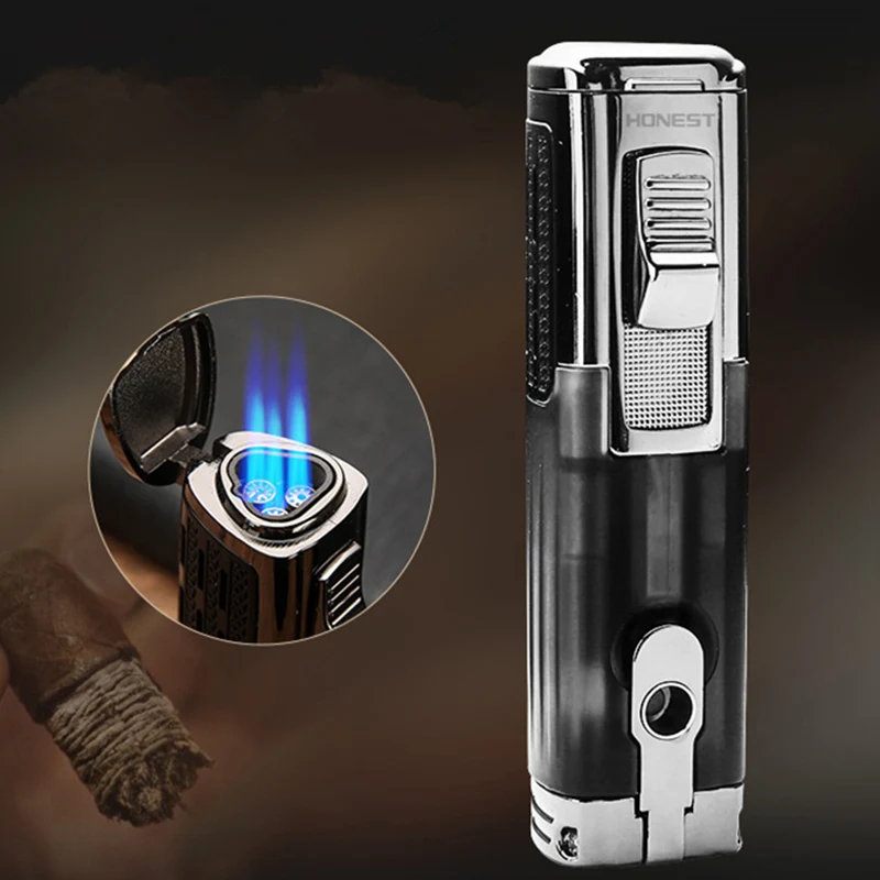 Мощный ветрозащитный тройной фонарь, турбо-зажигалка, струйная Пожарная Труба, газовая металлическая зажигалка, пистолет-распылитель, сигарета, Бутан, мужской подарок Если вы купили 2 шт. и больше, вы получите дополнительную скидку 2%. Есть подарок при размещении заказа Нет газа в зажигалке, необходимо заполнить газ перед первым использованием.