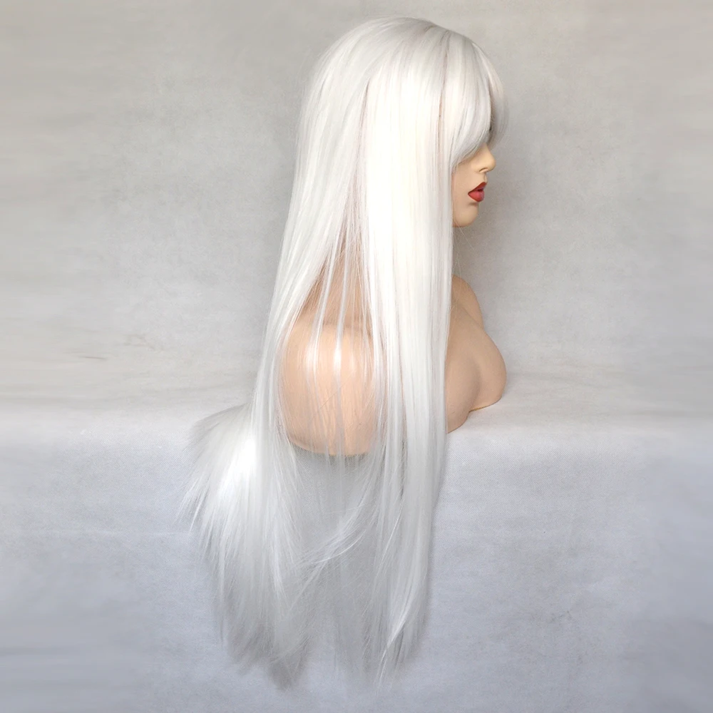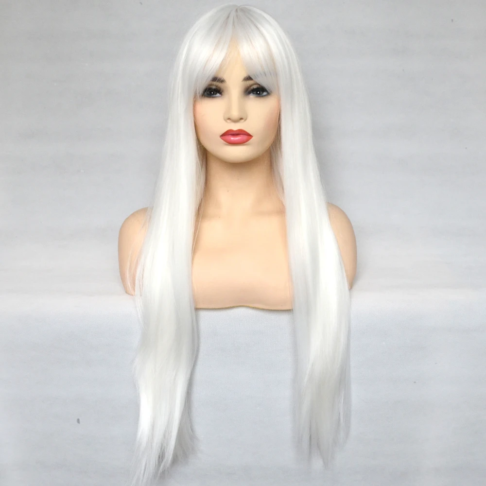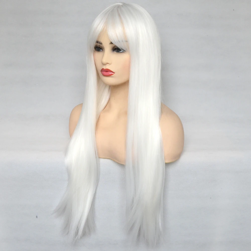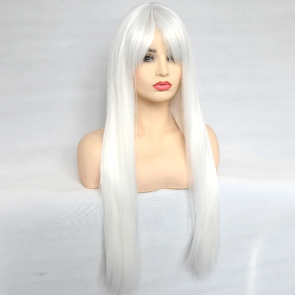 Парик для женщин Vogue Queen, Платиновый, белый, синтетический, шелковистый, прямой, полностью машинное изготовление, Термостойкое волокно, косплей