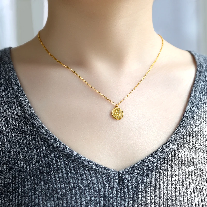 ICFTZWE 12 зодиака Созвездие резное монетное ожерелье с подвеской простое медное ожерелье с цепочкой для ключицы