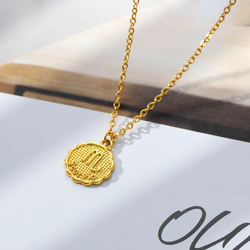 Женское Ожерелье со знаками Зодиака, цепочка из нержавеющей стали с...