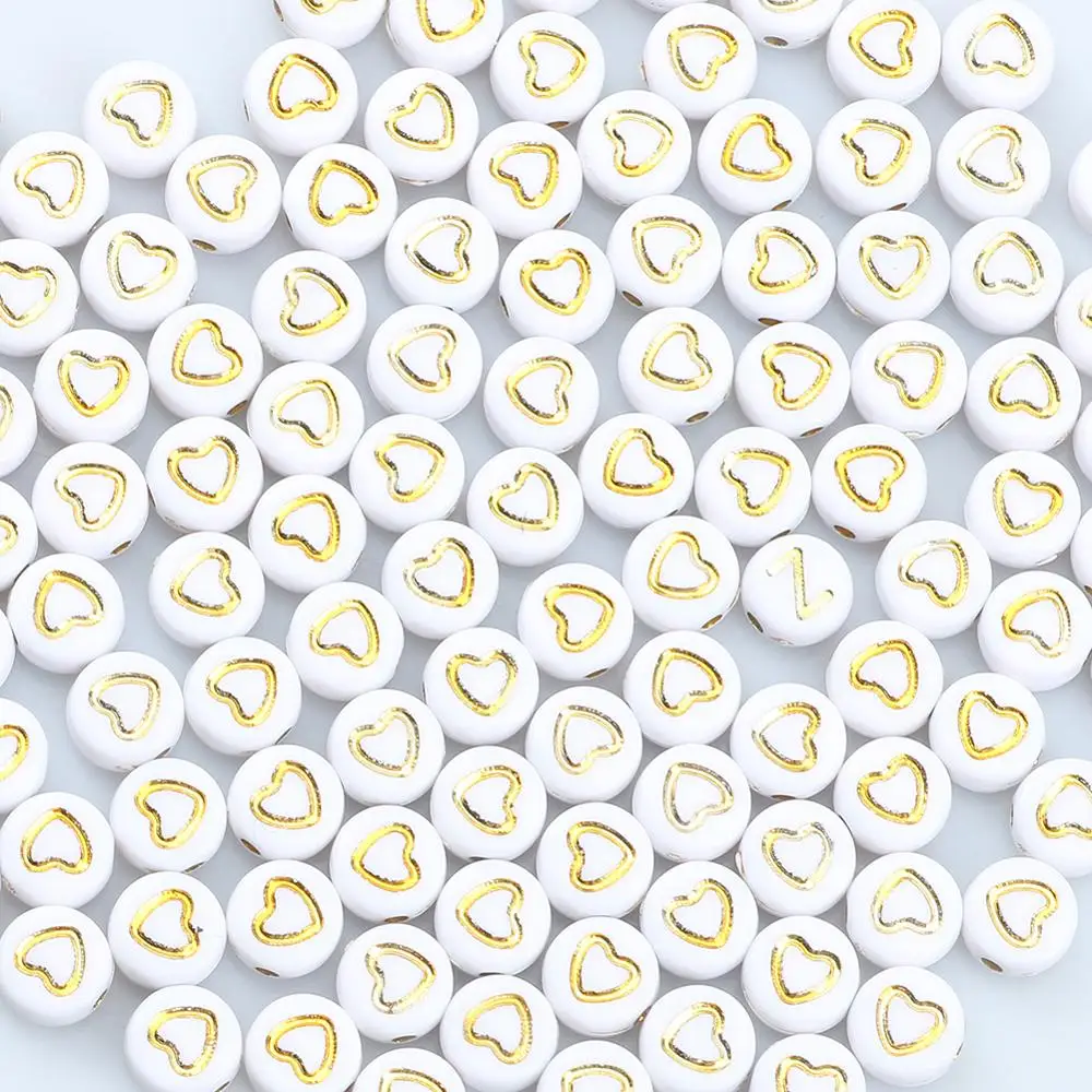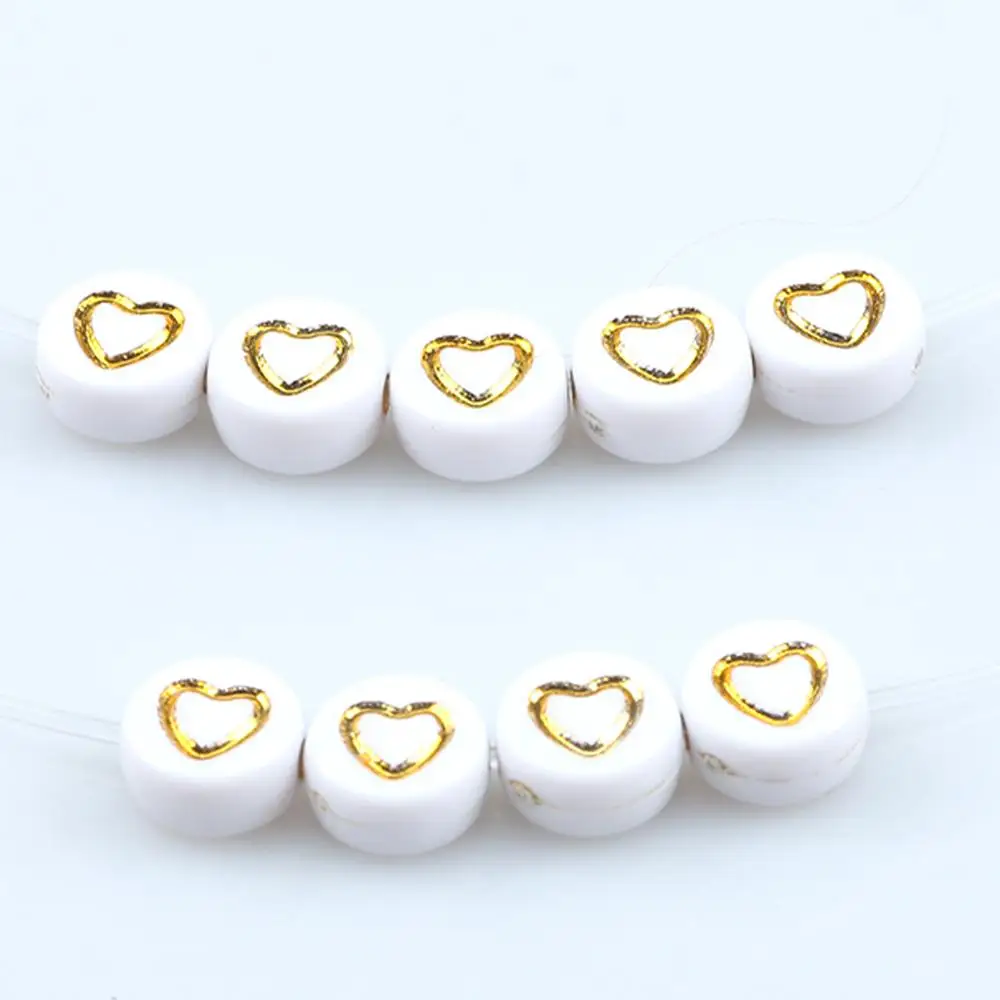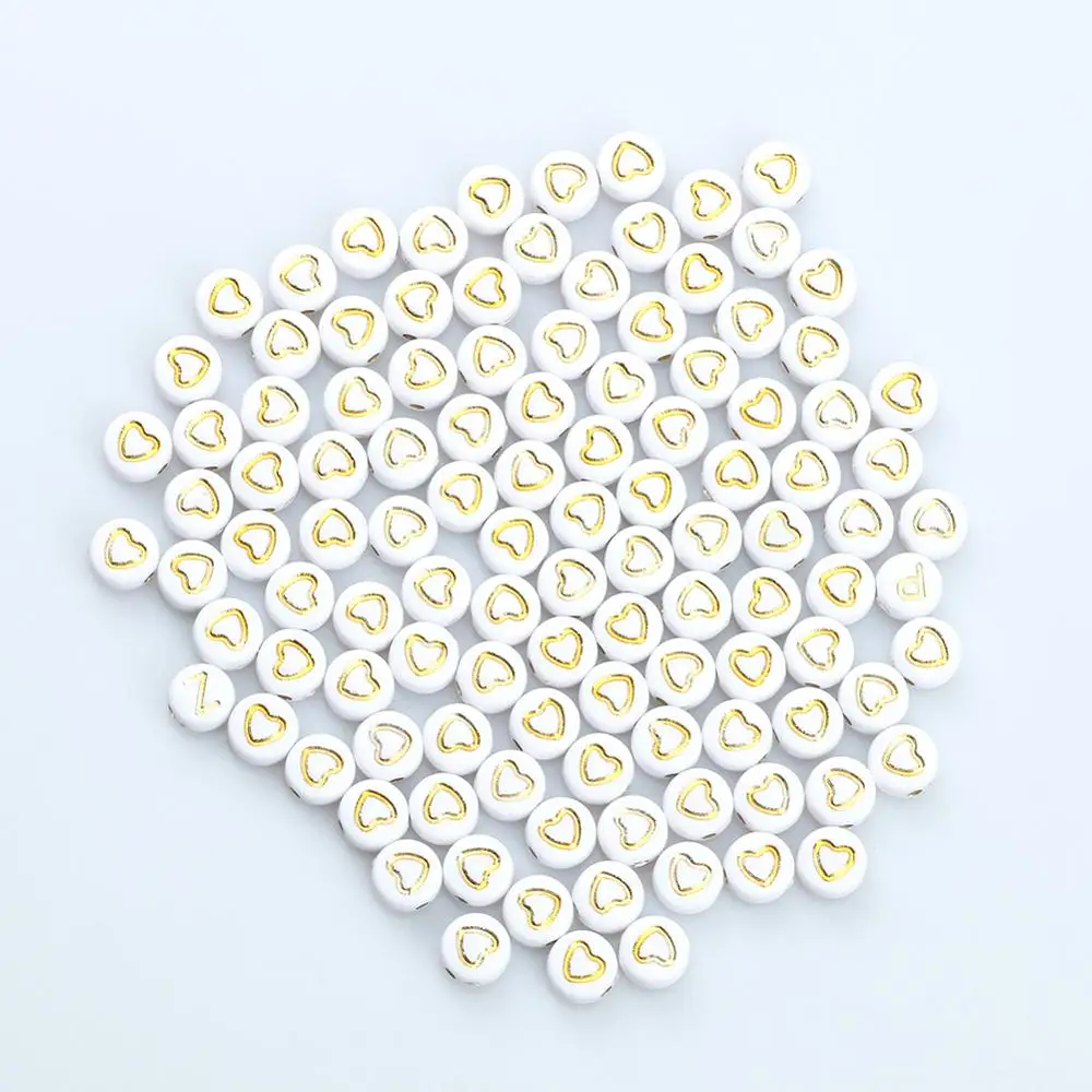 4x7 мм 100 шт. цвета: золотистый, с принтом сердце, Любовь белые акриловые круглые бусины Свободные Spacer Бусины для изготовления ювелирных изделий Diy для детей для браслетов и ожерелий