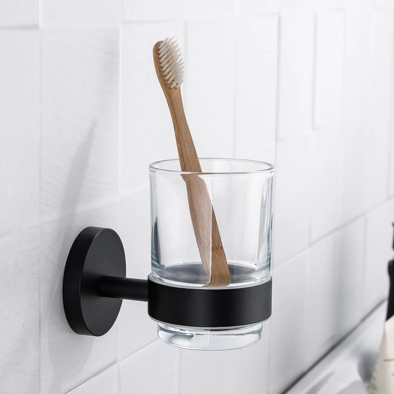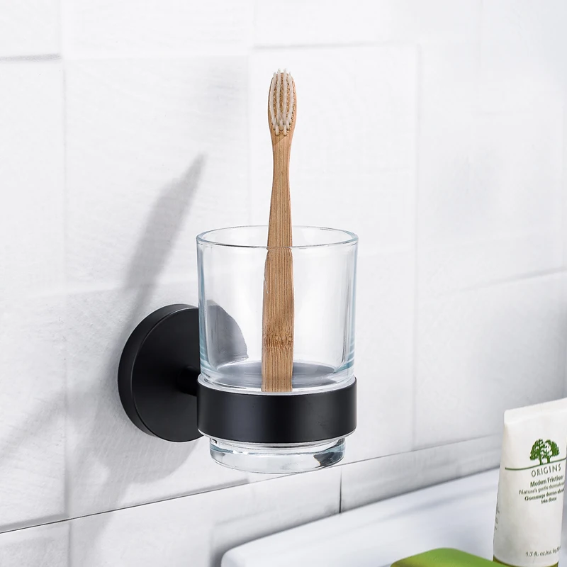 304 нержавеющая сталь аксессуары для ванной комнаты держатель чашки для зубной щетки матовый черный настенный держатель для стакана