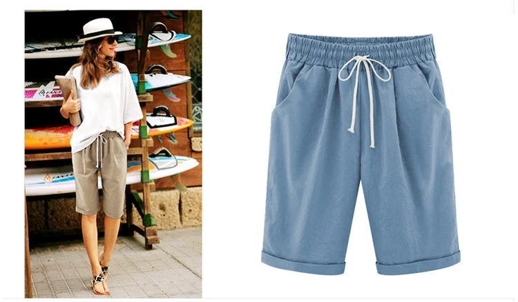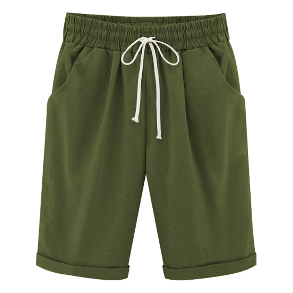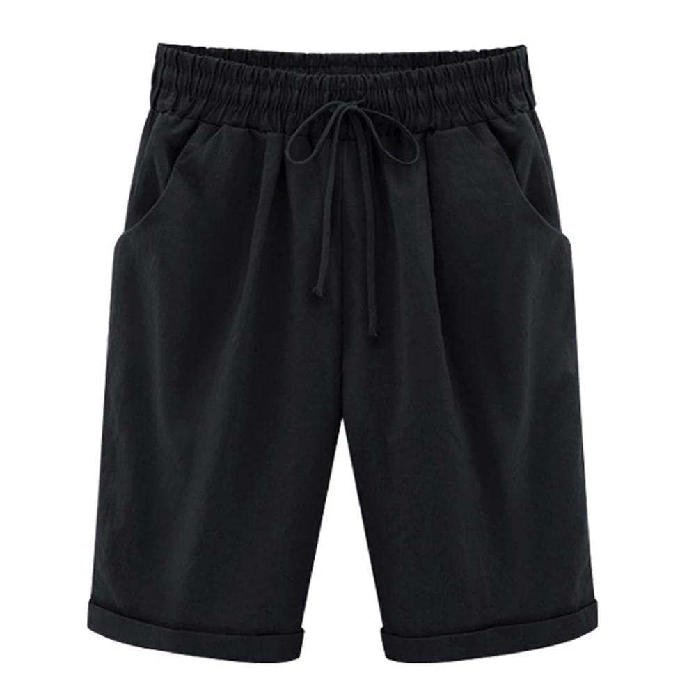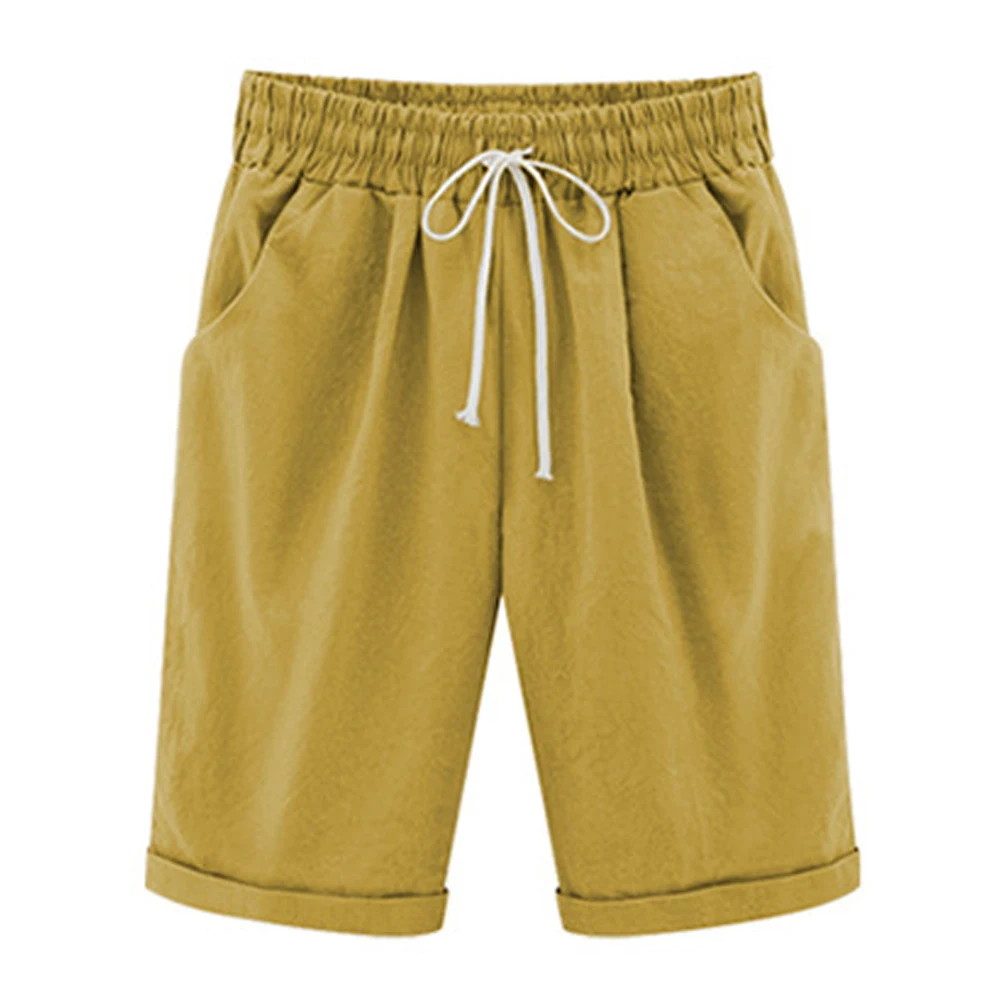Пляжные повседневные короткие женские шорты с эластичной резинкой на талии, короткие брюки с карманами для отдыха, домашние летние женские шорты с высокой талией