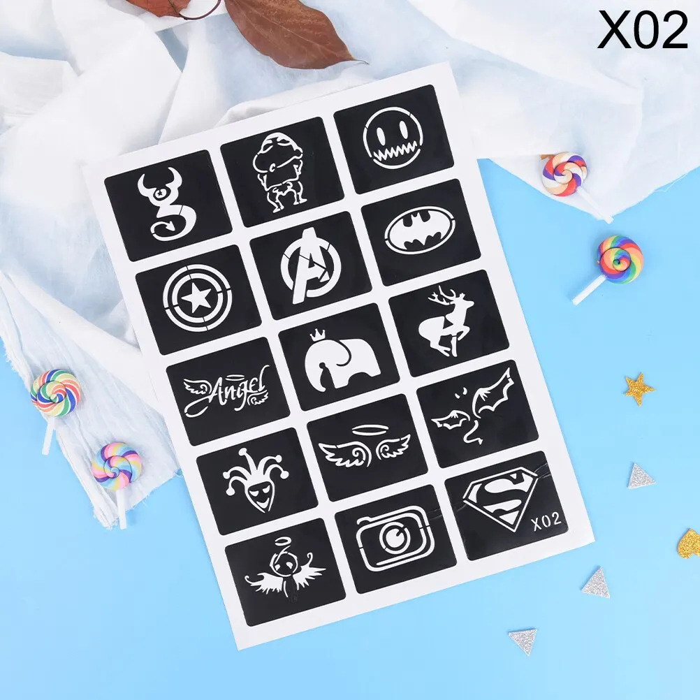 Тип: трафарет для татуировкиТип шаблона: аэрография блеск трафарет татуировкиОсобенности продукта: для девочки, мальчики, дети трафарет татуировкиПозиция вставки: трафарет для нанесения блестящих татуировокРазмер: как показаноМатериал: ПВХ наклейки трафарет татуировкиДизайн: X01,X02, X03,X04,X05