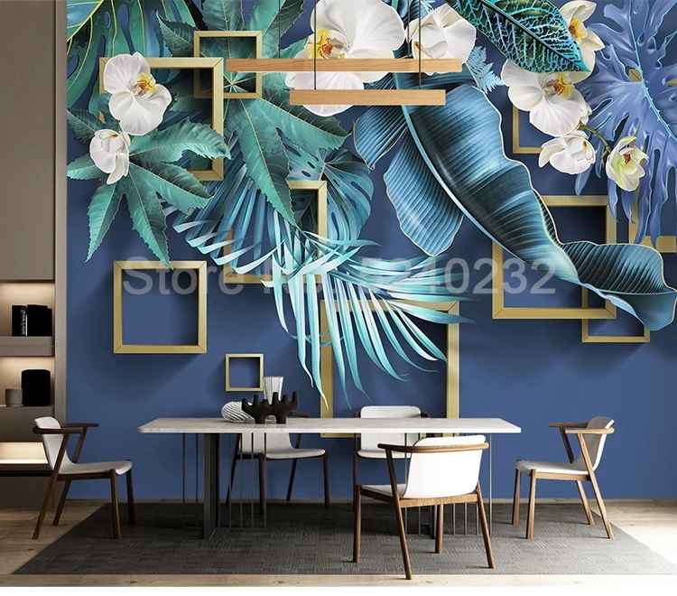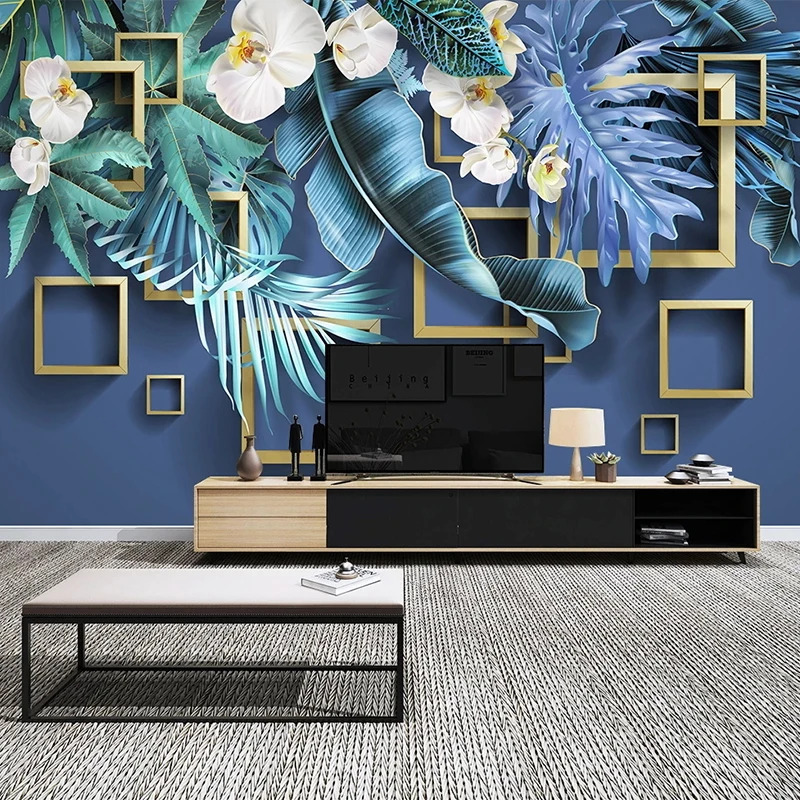 3D фотообои на заказ, с изображением листьев растений, цветов, геометрической решетки, для современной гостиной, дивана, телевизора, фона, фотообои