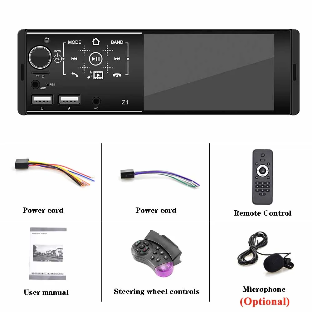 Товар входит в комплект1 х Автомобильный MP5 плеер1 х Кабель питания1 пульт дистанционного управления1 x Руководство пользователя1 х управление рулевым колесом1 x Внешний микрофон(Опционально)1 запасная камера (опционально)