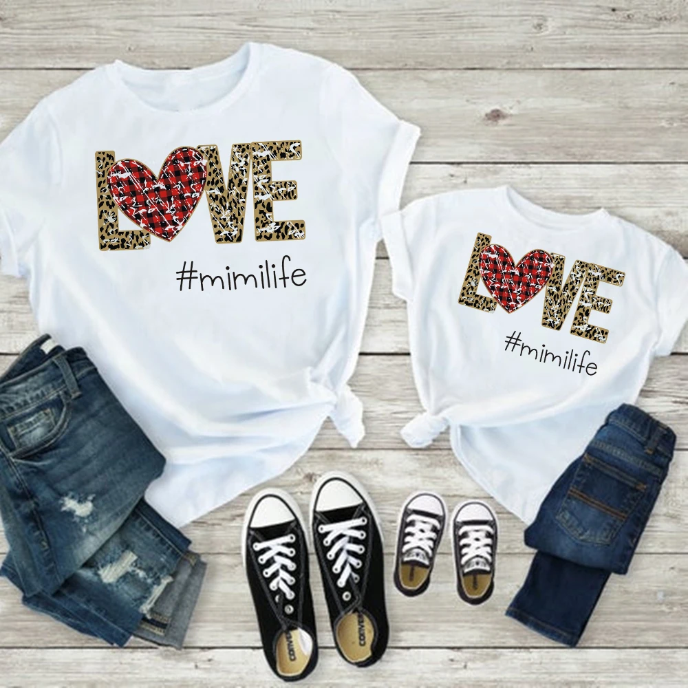 Наряды для маленьких девочек и мальчиков, семейный образ, футболка, леопардовое платье с надписью LOVE для мамы и дочки, футболка, лидер продаж, летняя футболка