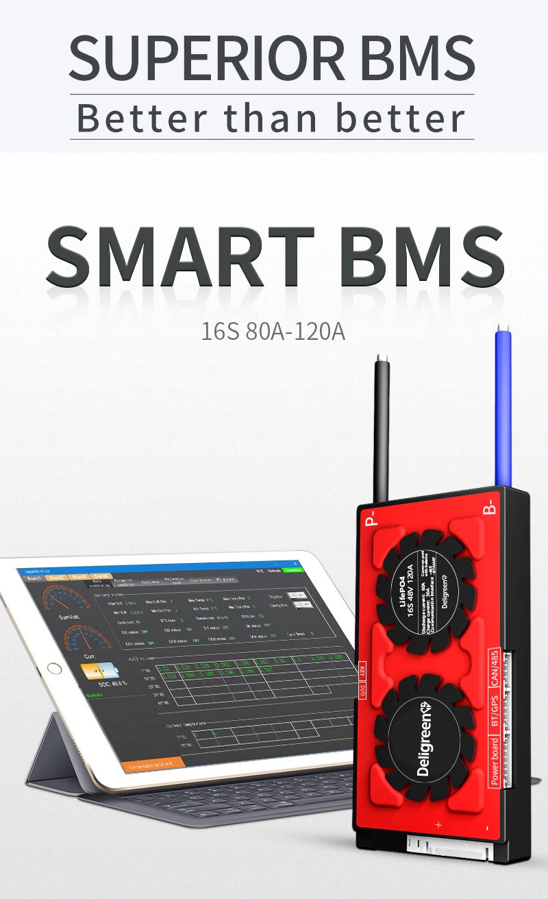 Высокоточный умный BMS 16S 48V 80A 100A 120A 3,2 V lifepo4 BMS Bluetooth 485 CAN box NTC UART