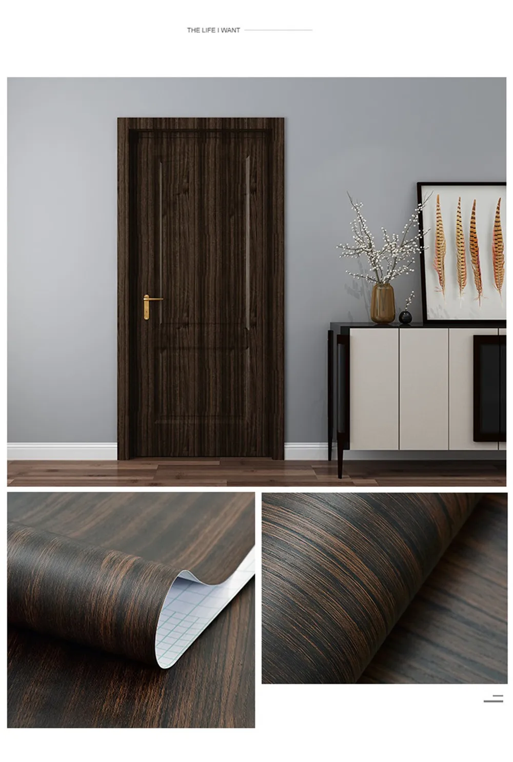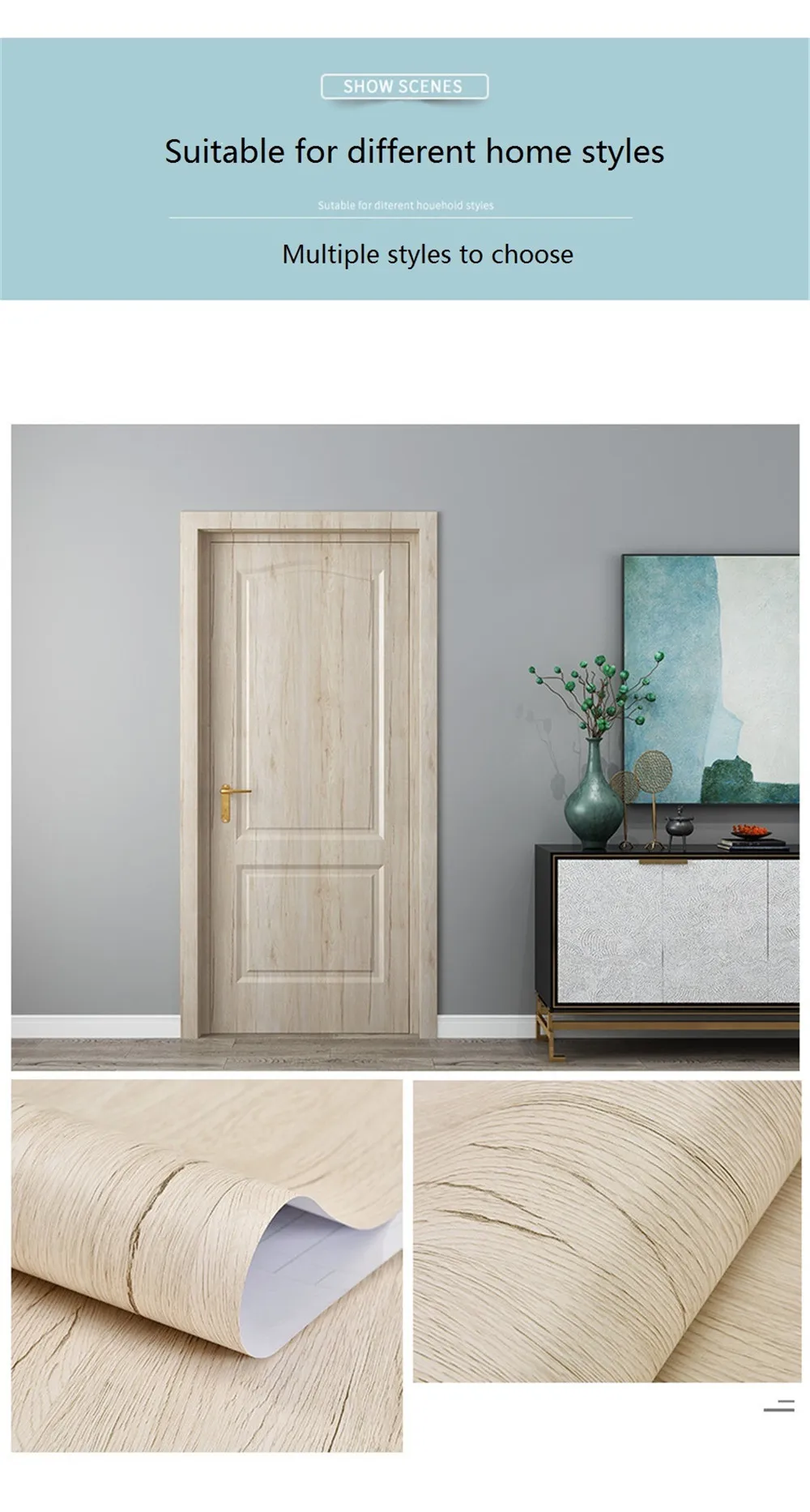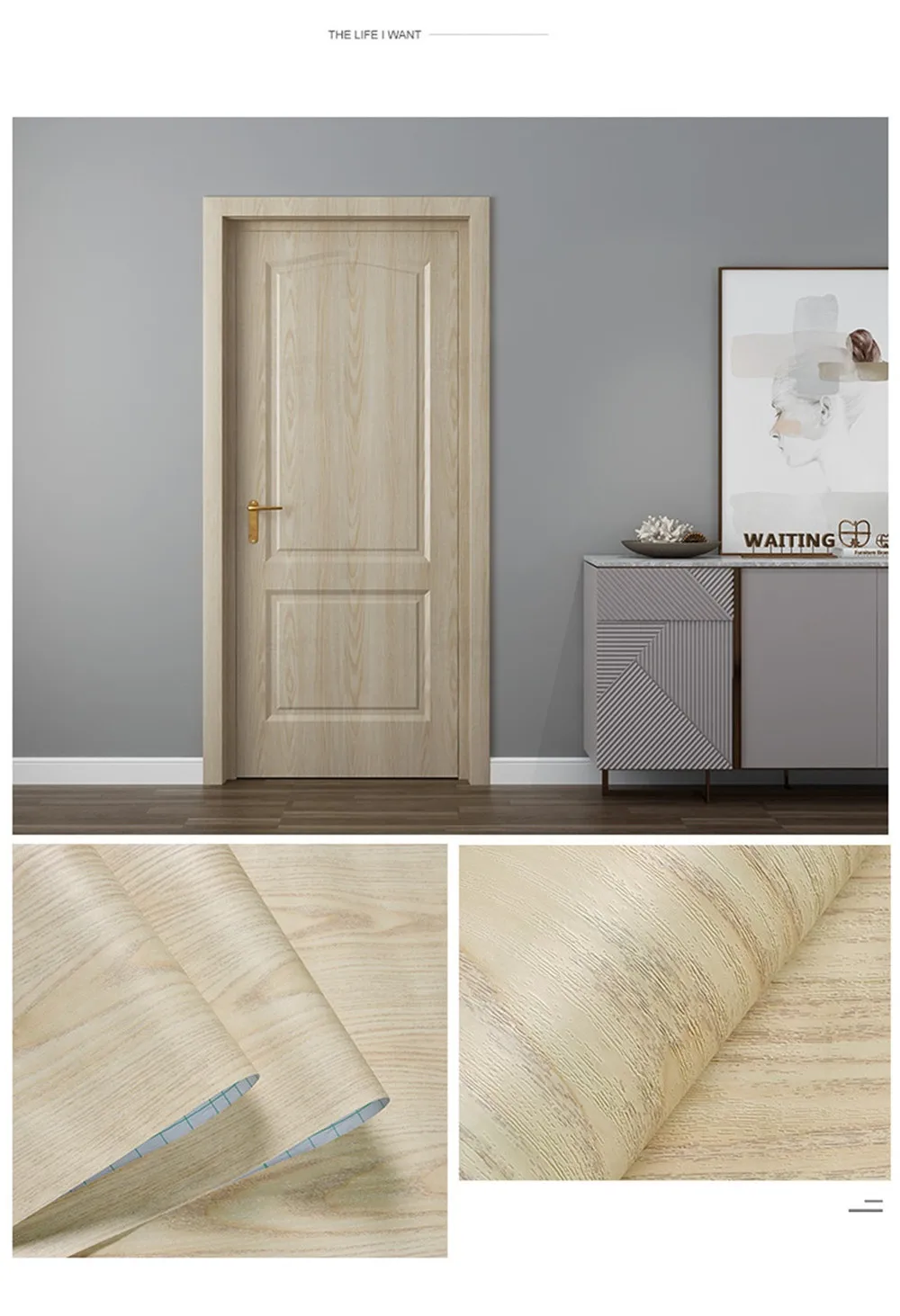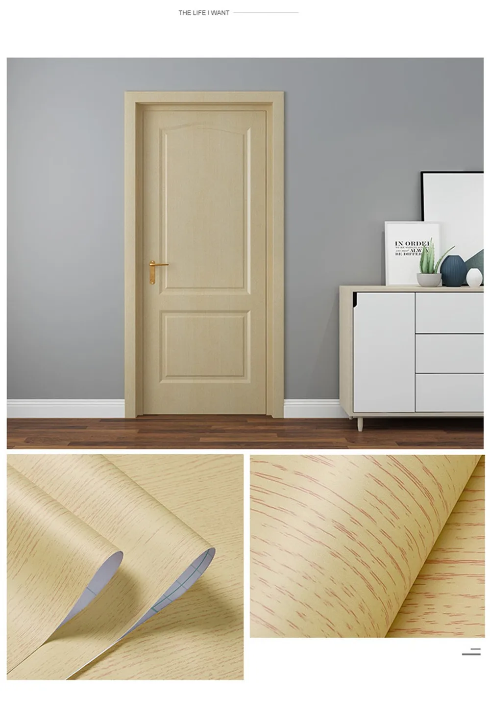 1. Размер изделия:Размер A : 90x210 см (35,43x82,68 дюйма)Размер B : 30x500 см (11,81x196,85 дюйма)2. Функция:А) Ремонт отделки дверей, ремонт мебелиB) самоклеющиеся, водонепроницаемые, съемныеВ) мы используем бумажные трубки для защиты наклеек, чтобы предотвратить сгибание наклеек во время транспортировки.D) для лучшей установки, пожалуйста, посмотрите Наше Видео установки перед установкой.