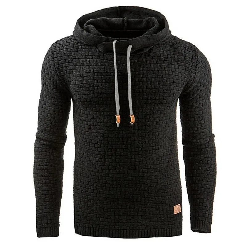 Мужской Повседневный свитер с капюшоном, черный Однотонный пуловер ...
