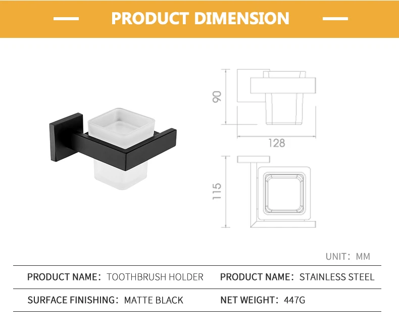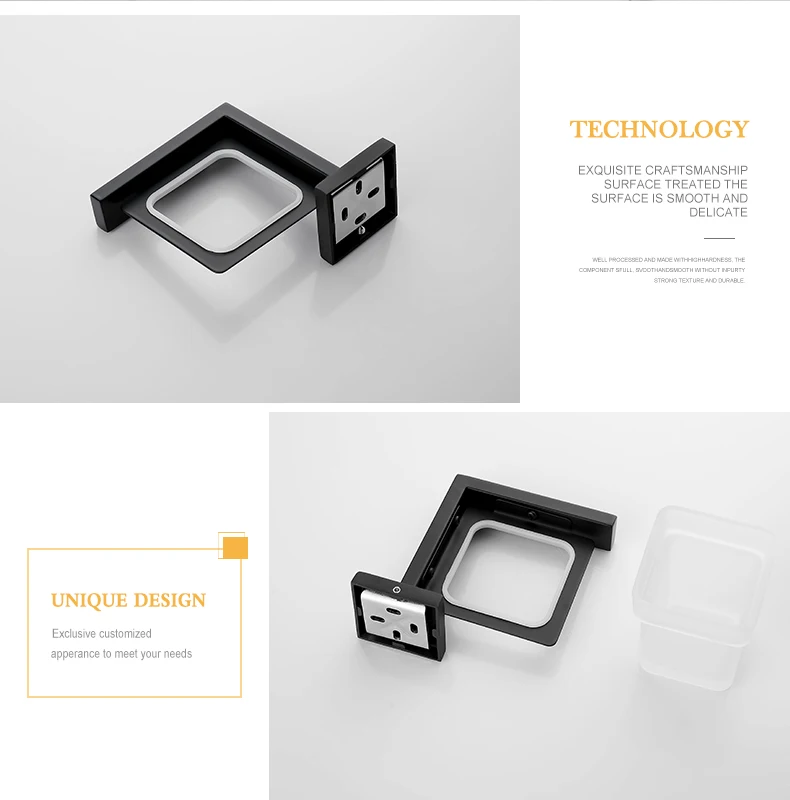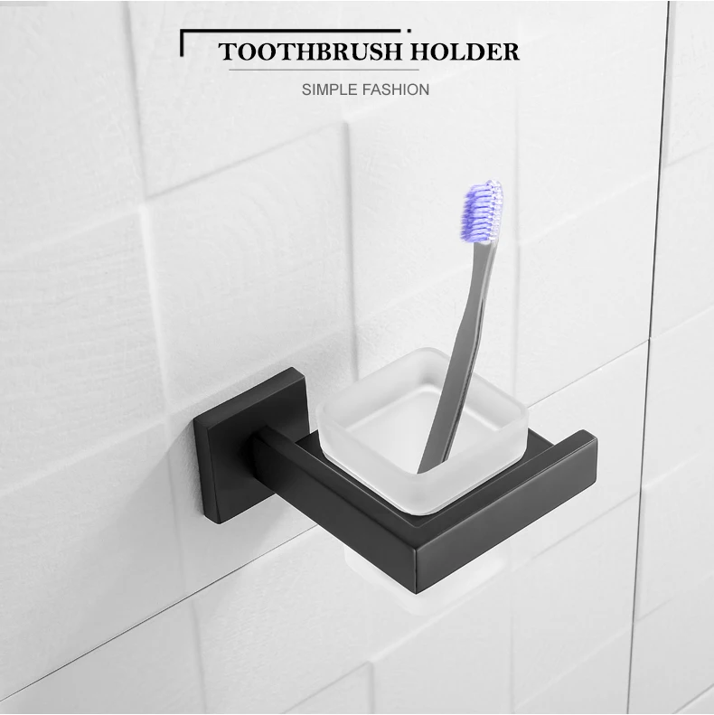 Матовый черный держатель для зубных щеток, стакан для ванной комнаты, настенный держатель для зубной пасты, аксессуары из нержавеющей стали
