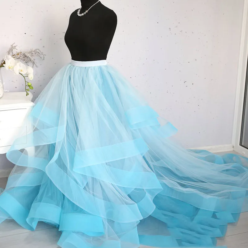 Женская Длинная свадебная юбка, небесно-голубая юбка макси с драпировкой из конского волоса, элегантная вечерняя юбка с оборками на заказ