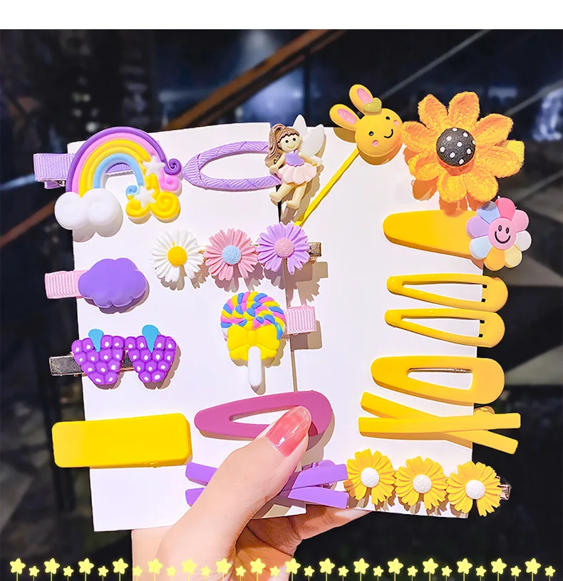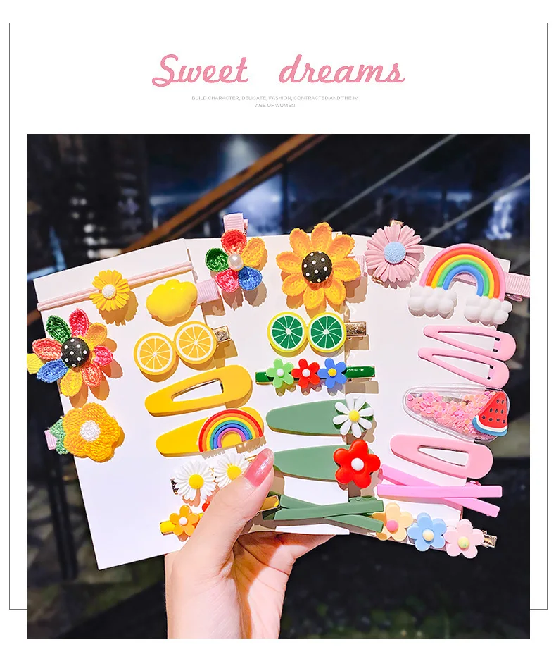 2020 Мода 8910набор милый мультяшный Цветок Фрукты Радуга цветной геометрический красивые заколки повязка на голову заколки орнамент головной убор