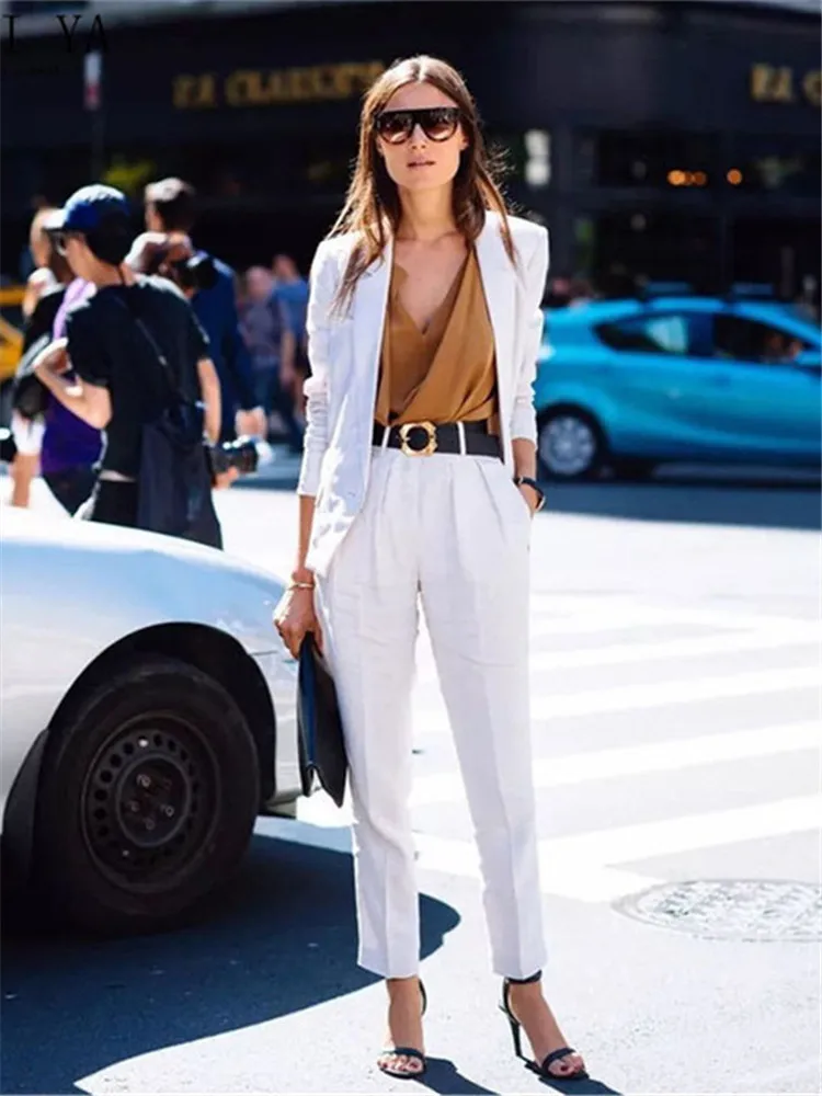 Женские деловые костюмы, белый пиджак и брюки, Деловые женские элегантные Брючные костюмы, Офисная форма, стильный женский брючный костюм на заказ