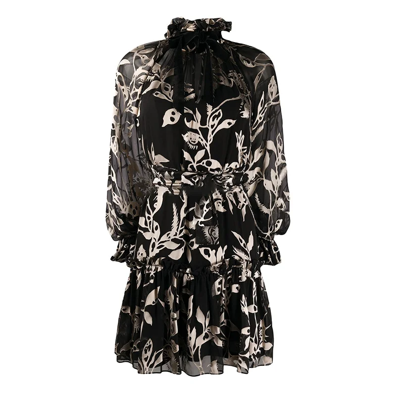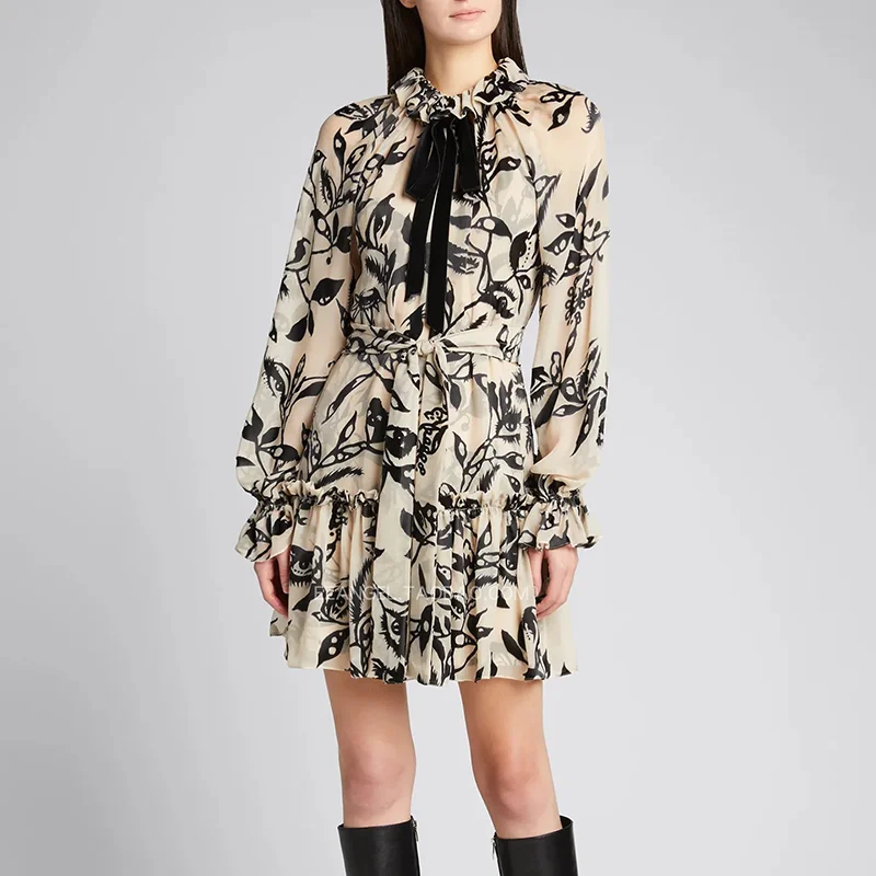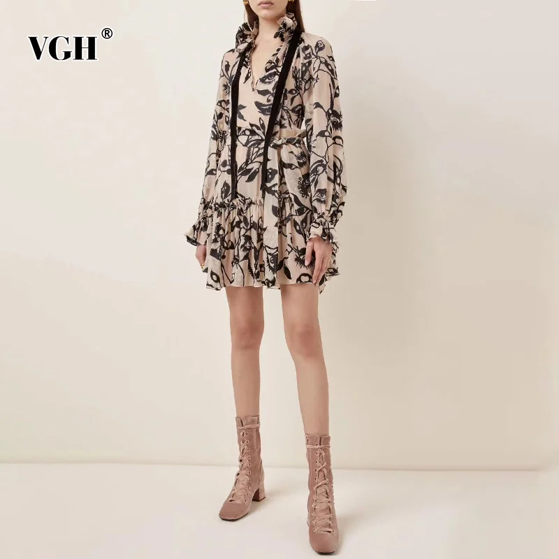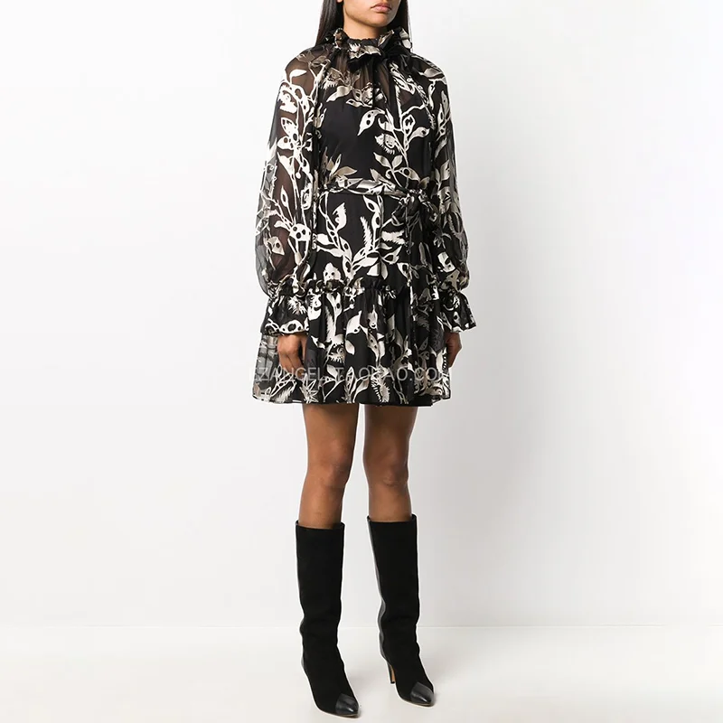 Женское мини-платье на завязках VGH, винтажное платье с бантом, воротником-стойкой, рукавами-фонариками и высокой талией, осень 2020 icon star icon star icon star icon star icon star