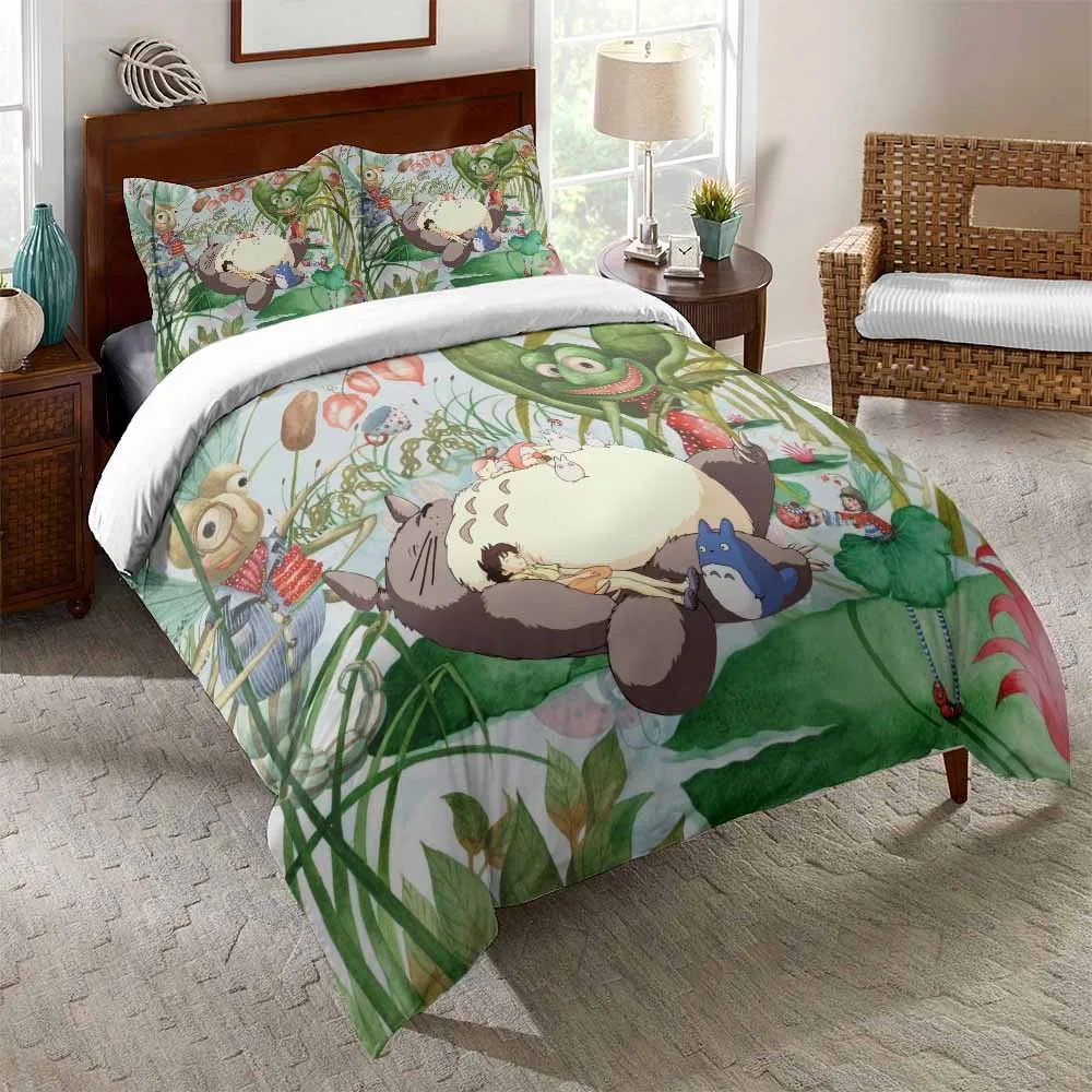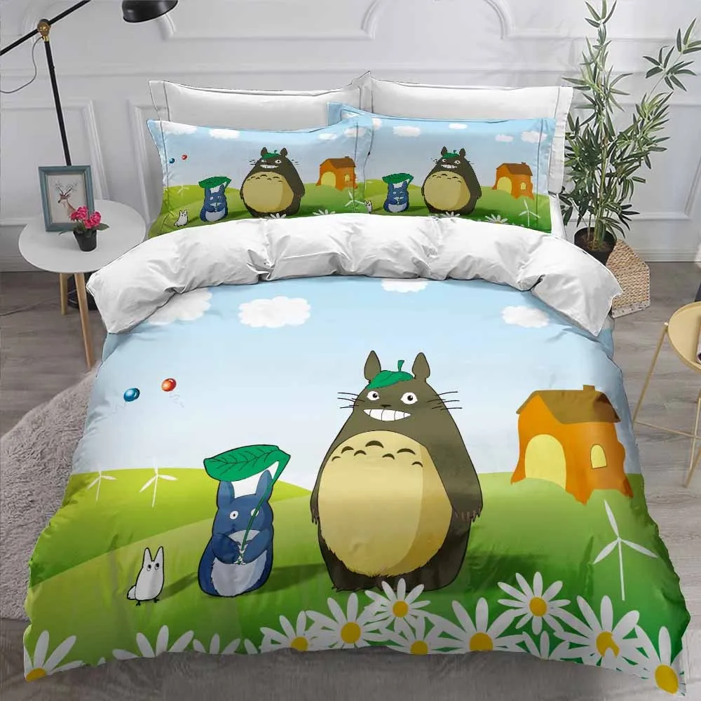 Новинка 2020, Комплект постельного белья с аниме Тоторо, пододеяльники, наволочки, 2/3 шт., Комплект постельного белья, японский мультяшный Тоторо, пододеяльник, постельное белье