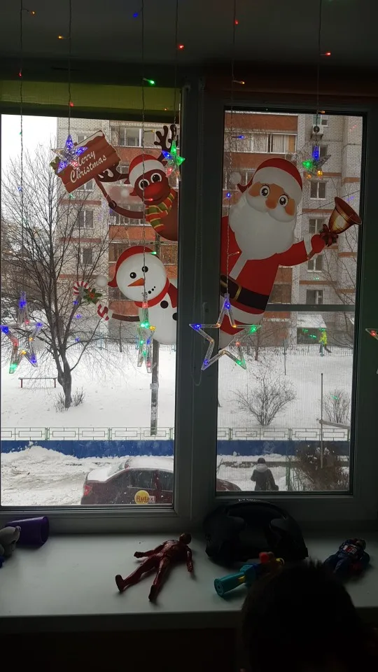 Классные наклейки на окно, ребёнок очень ждал и сам получал на почте, завтра будем украшать окно и создавать новогоднее настроение