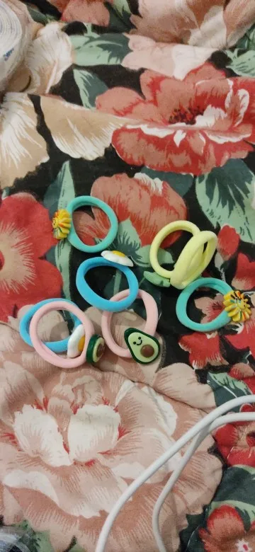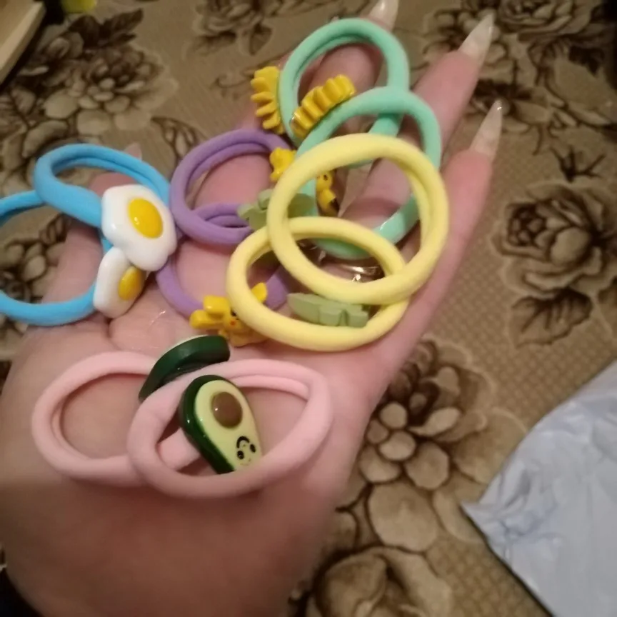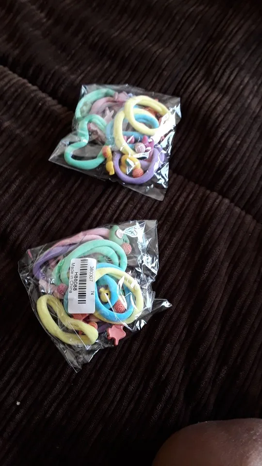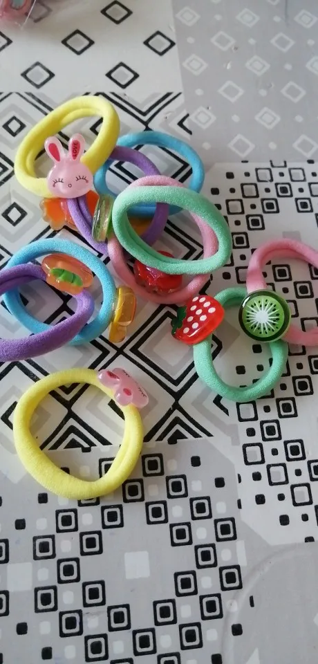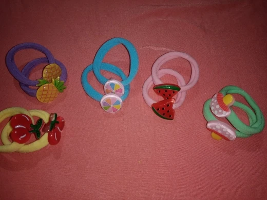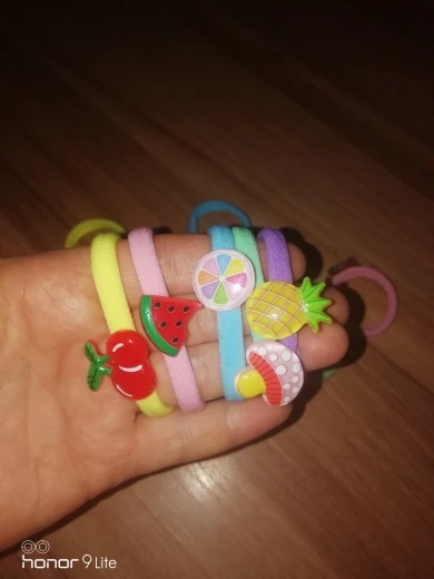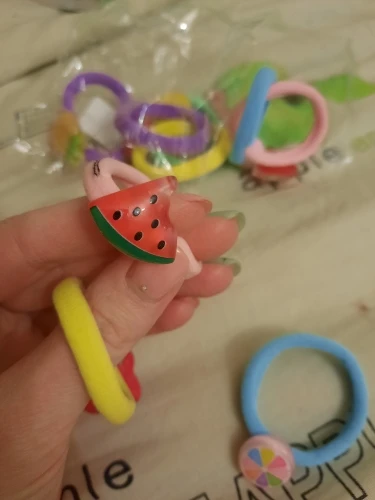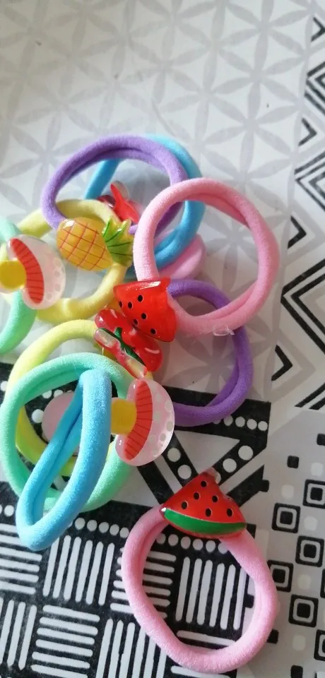 резинки замечательные. Большие, на густые волосы тоже пойдут. Вот "приклеенных фруктиков" не знаю на долго ли хватит. Доставка быстрая, около месяца с учётом их праздников.